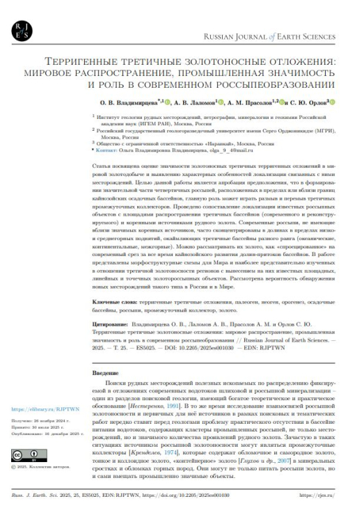 Статья посвящена оценке значимости золотоносных третичных терригенных отложений в мировой золотодобыче и выявлению характерных особенностей локализации связанных с ними месторождений. Целью данной работы является апробация предположения, что в формировании значительной части четвертичных россыпей, расположенных в пределах или вблизи границ кайнозойских осадочных бассейнов, главную роль может играть размыв и перемыв третичных промежуточных коллекторов.