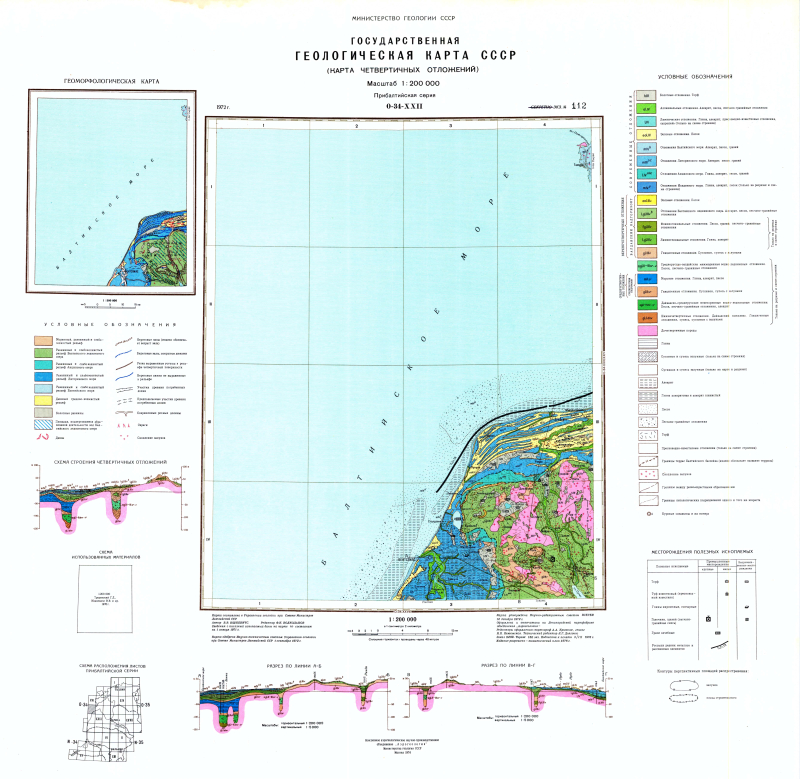 O-34-XXII. Геологическая карта СССР. Карта четвертичных отложений. Прибалтийская серия
