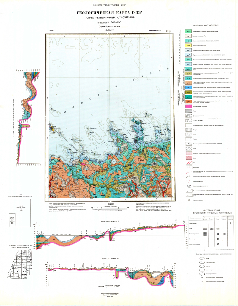 O-35-I. Геологическая карта СССР. Карта четвертичных отложений. Прибалтийская серия