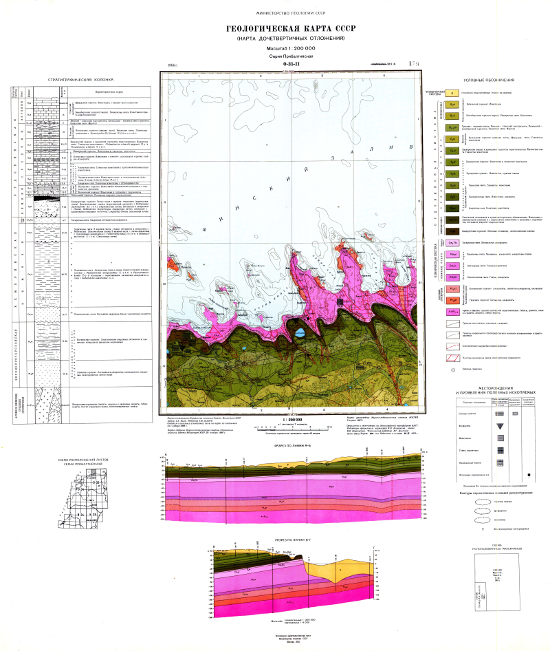 O-35-II. Геологическая карта СССР. Карта дочетвертичных отложений. Прибалтийская серия