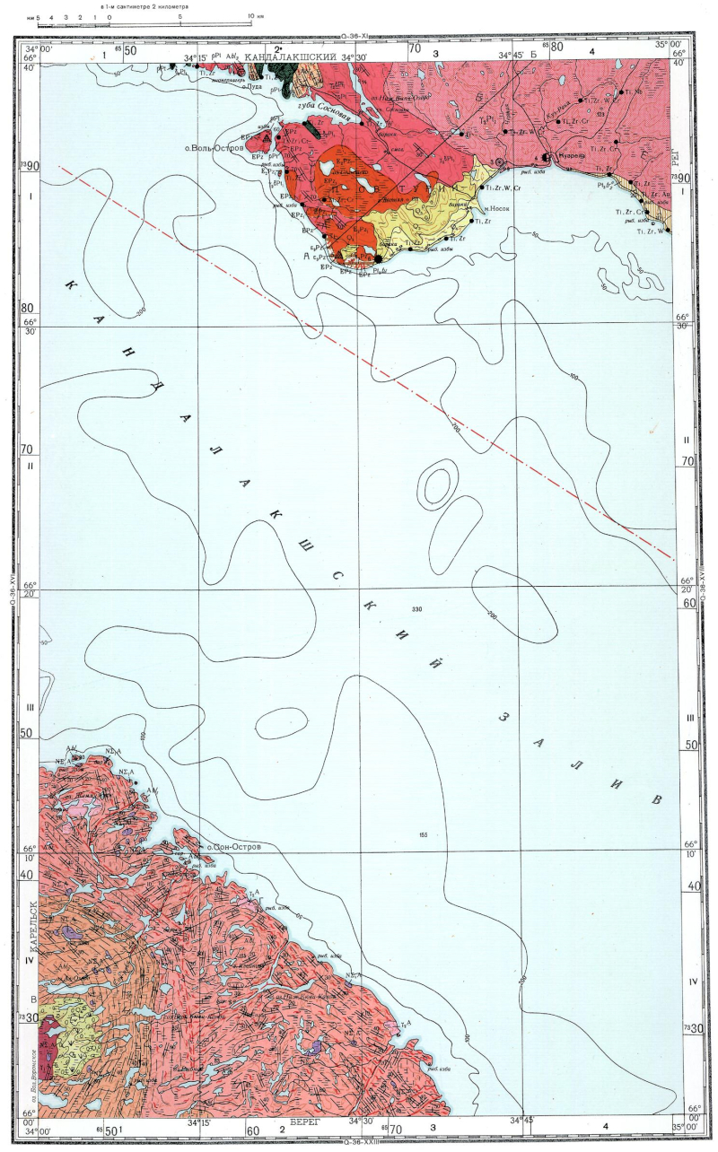 Q-36-XVI. Геологическая карта СССР. Геологическая карта и карта полезных ископаемых дочетвертичных образований. Карельская серия