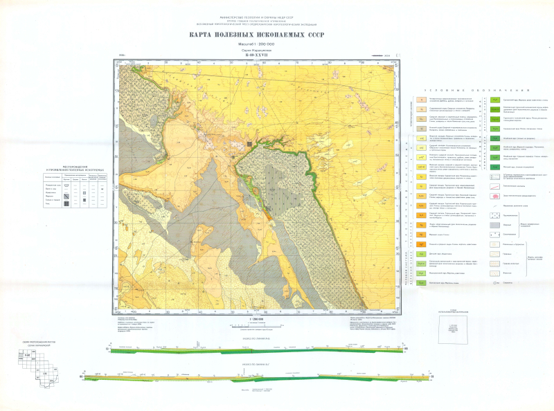 K-40-XXVII. Геологическая карта СССР. Карта полезных ископаемых. Каракумская серия