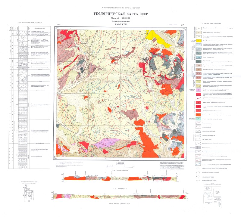 M-43-XXXII. Геологическая карта СССР. Геологическая карта и карта полезных ископаемых дочетвертичных образований. Карагандинская серия