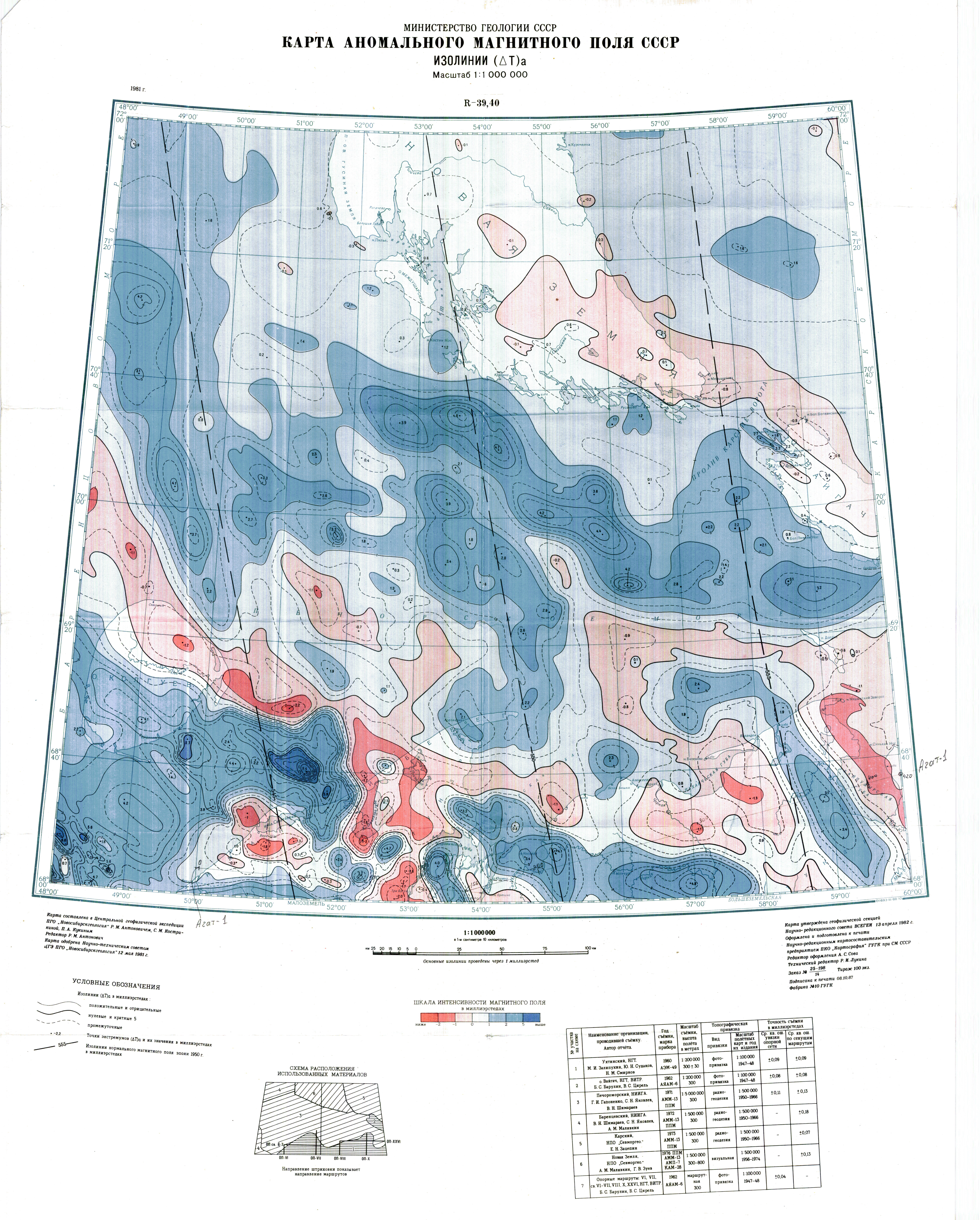 R-39,40. Карта аномального магнитного поля СССР. Изолинии (дельта Т)а