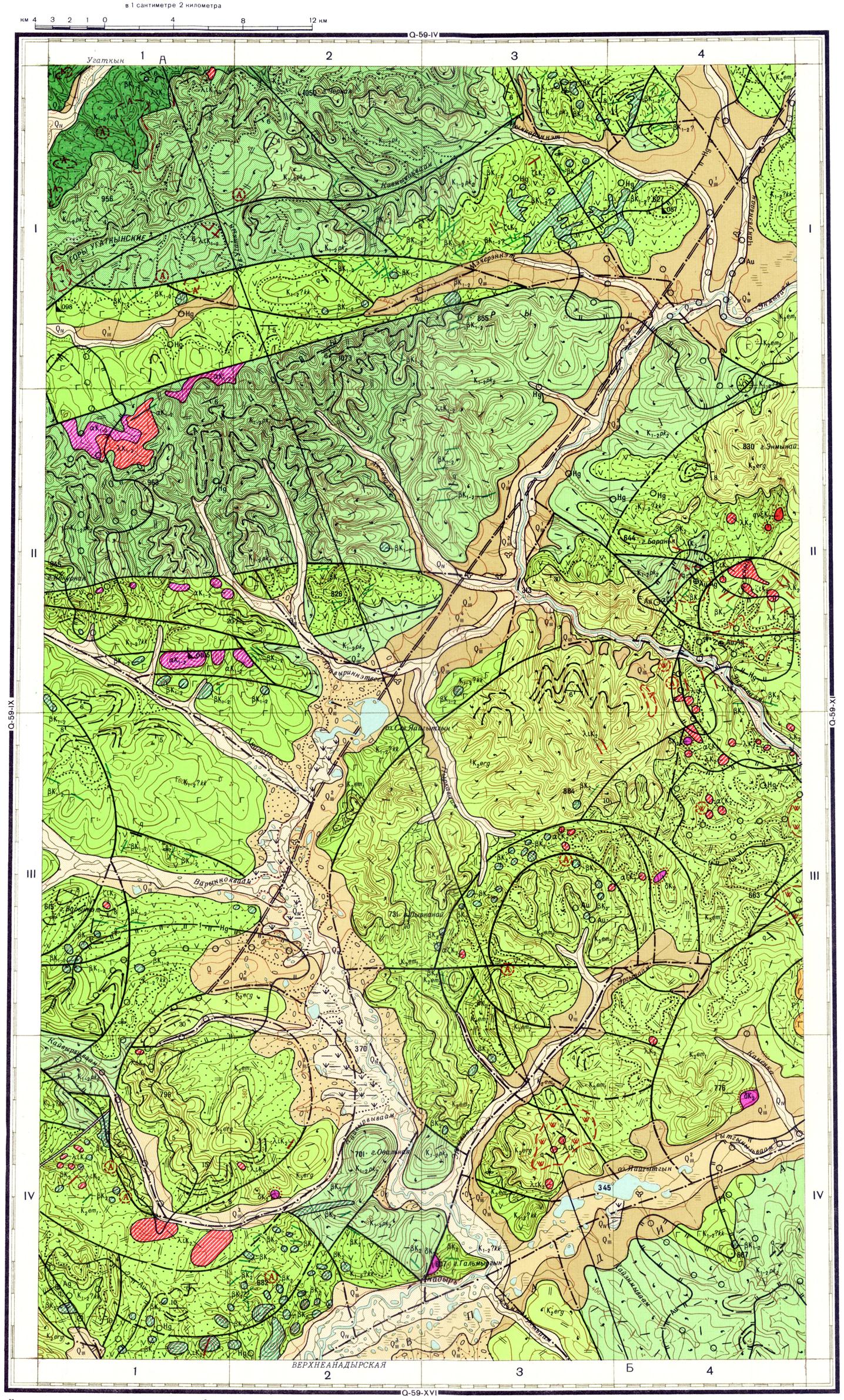 Q-59-X. Геологическая карта СССР. Геологическая карта и карта полезных ископаемых дочетвертичных образований. Анадырская серия