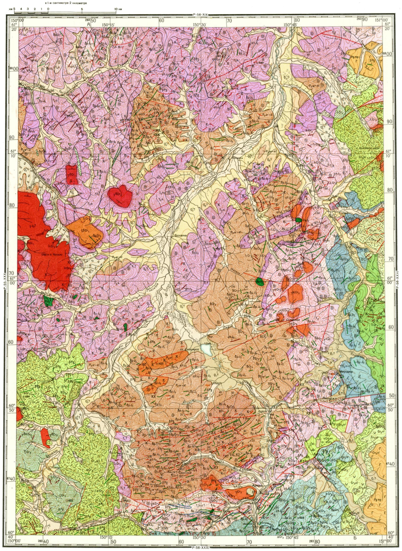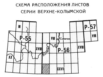 P-56-XXV. Геологическая карта СССР. Геологическая карта и карта полезных ископаемых дочетвертичных образований. Верхне-Колымская серия