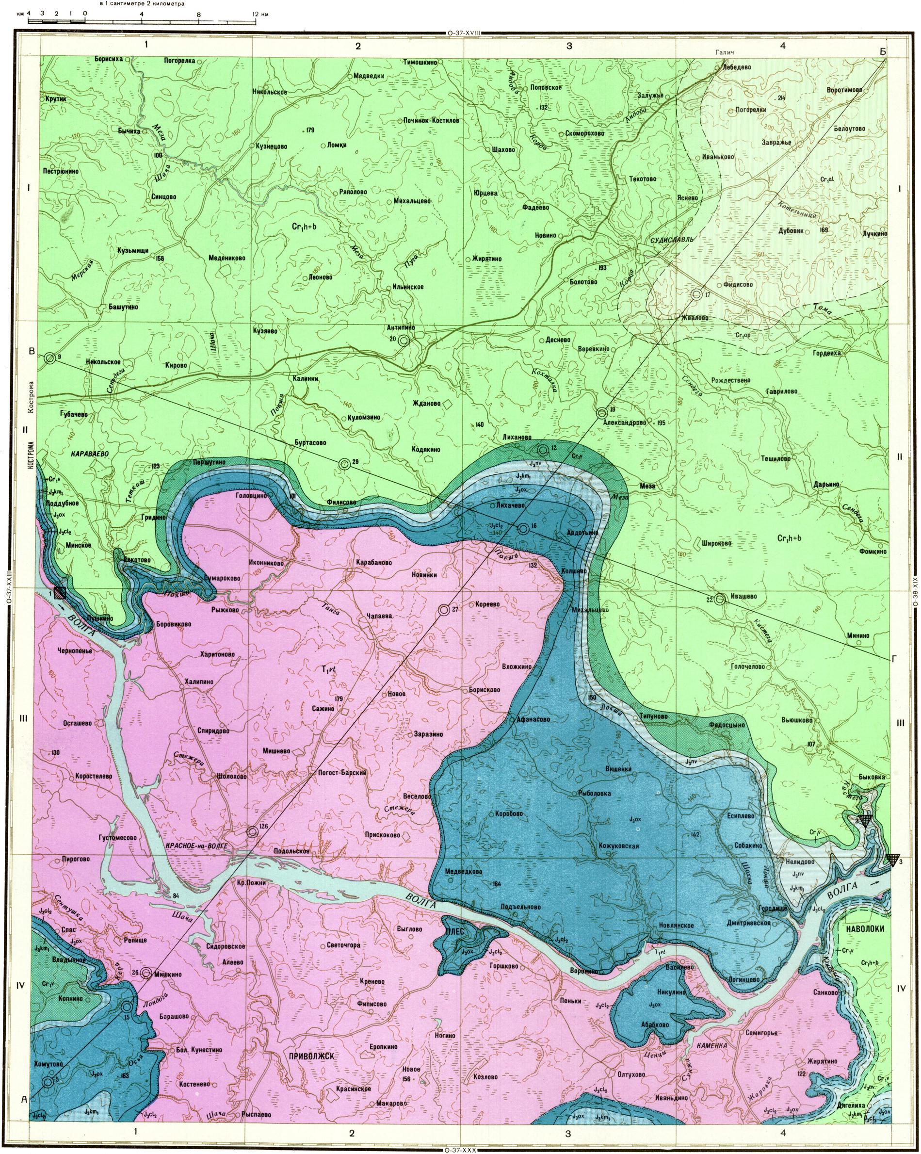O-37-XXIV. Геологическая карта СССР. Геологическая карта дочетвертичных отложений. Московская серия