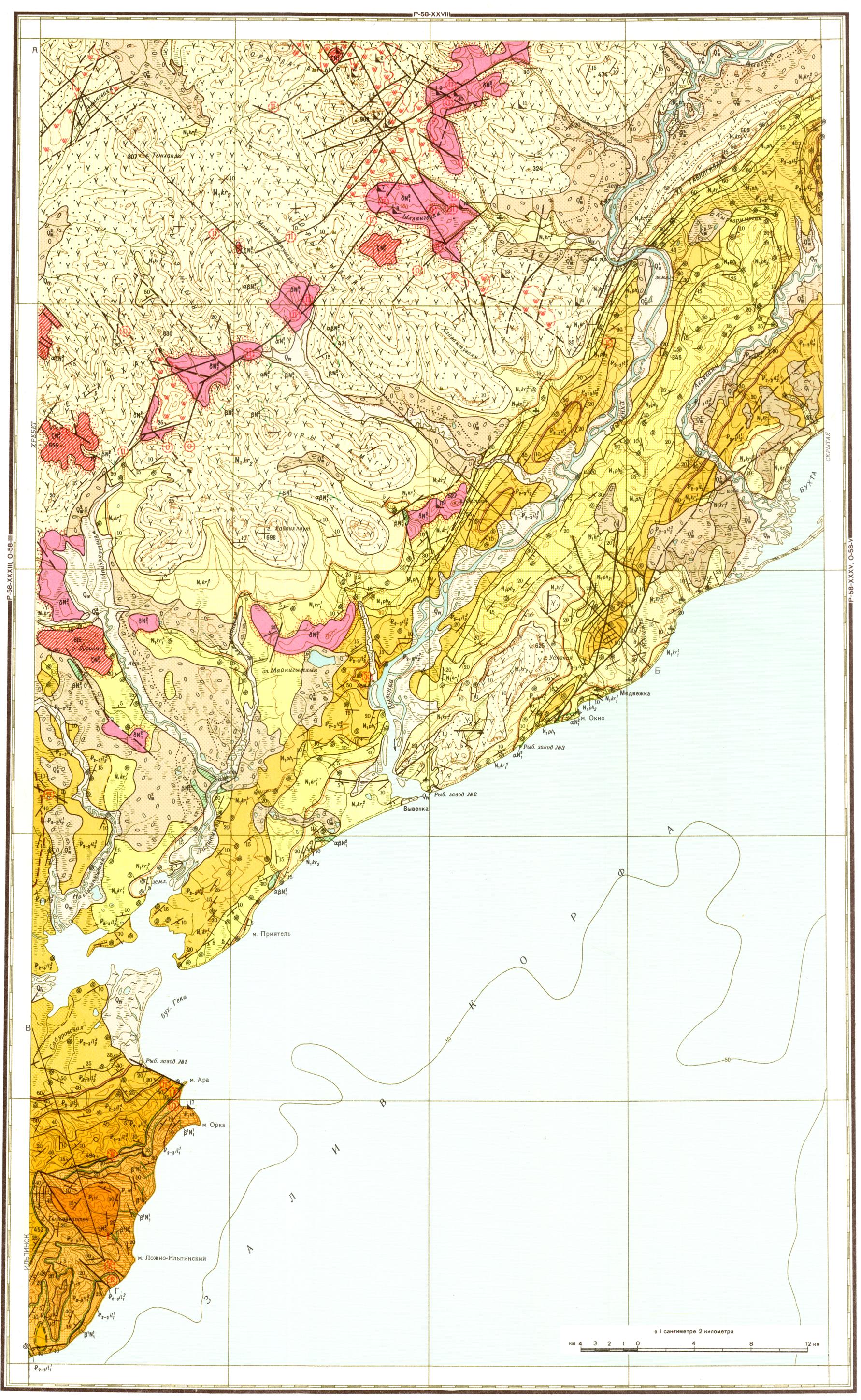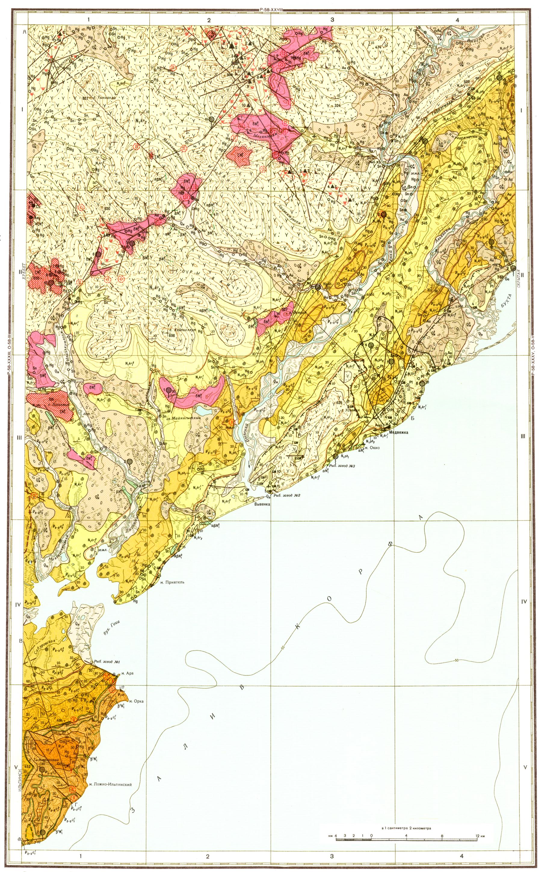 P-58-XXXIV, O-58-IV. Геологическая карта СССР. Геологическая карта и карта полезных ископаемых дочетвертичных образований. Корякская серия
