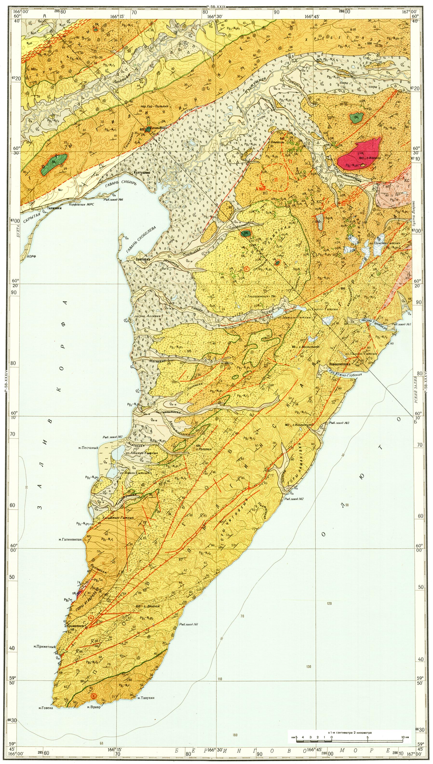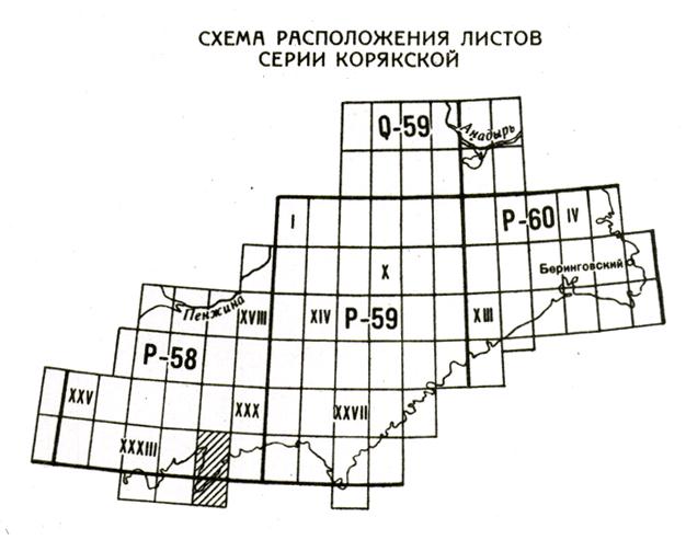 P-58-XXXV, O-58-V. Геологическая карта СССР. Геологическая карта и карта полезных ископаемых дочетвертичных образований. Корякская серия