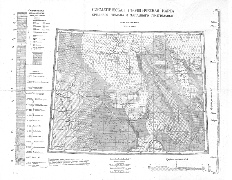 Схематическая геологическая карта Среднего Тимана и Западного Притиманья