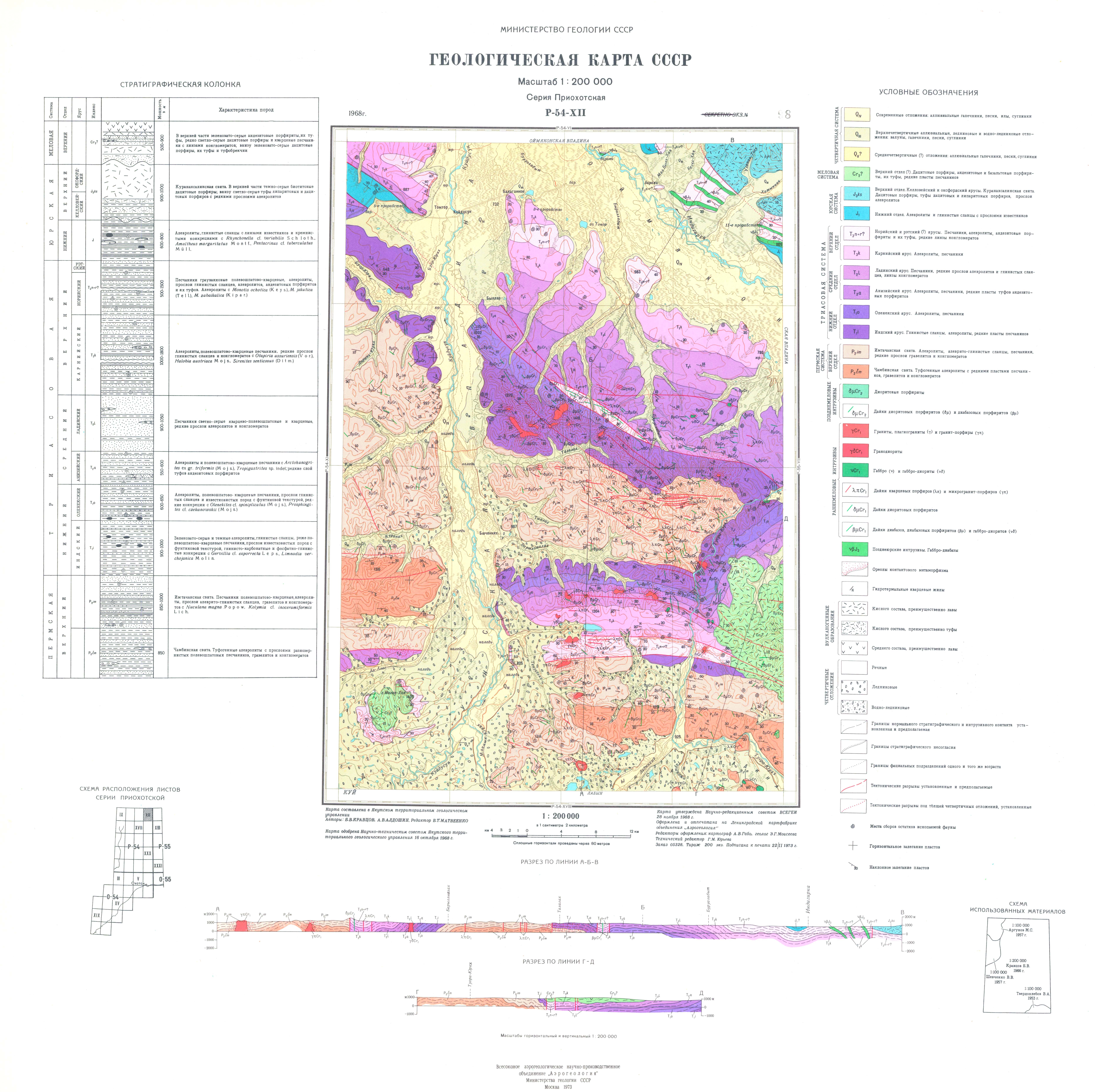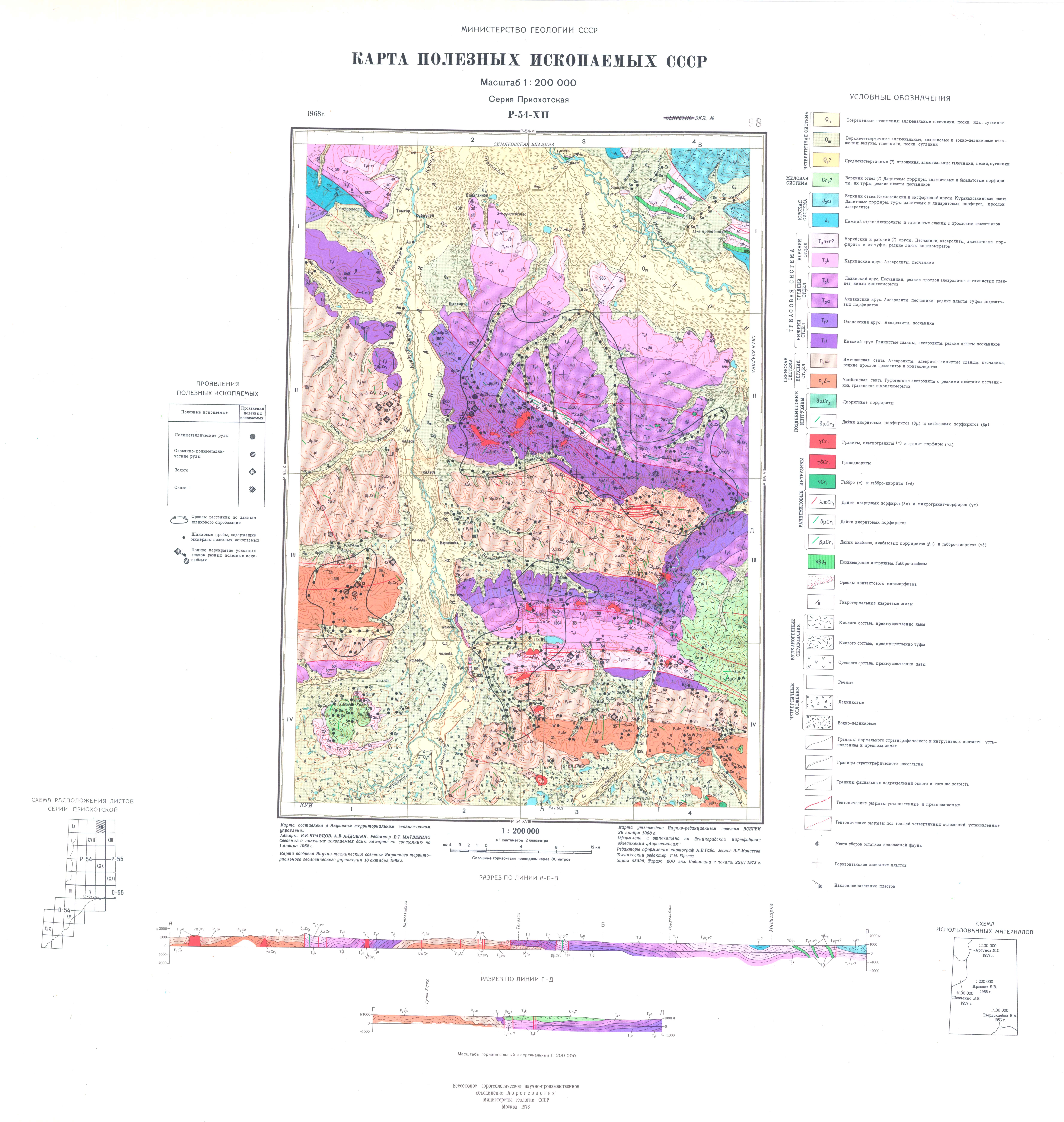 P-54-XII. Геологическая карта СССР. Геологическая карта и карта полезных ископаемых дочетвертичных образований. Приохотская серия