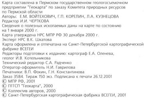 Карта составлена:ПГГСП Геокарта, 2000 г.