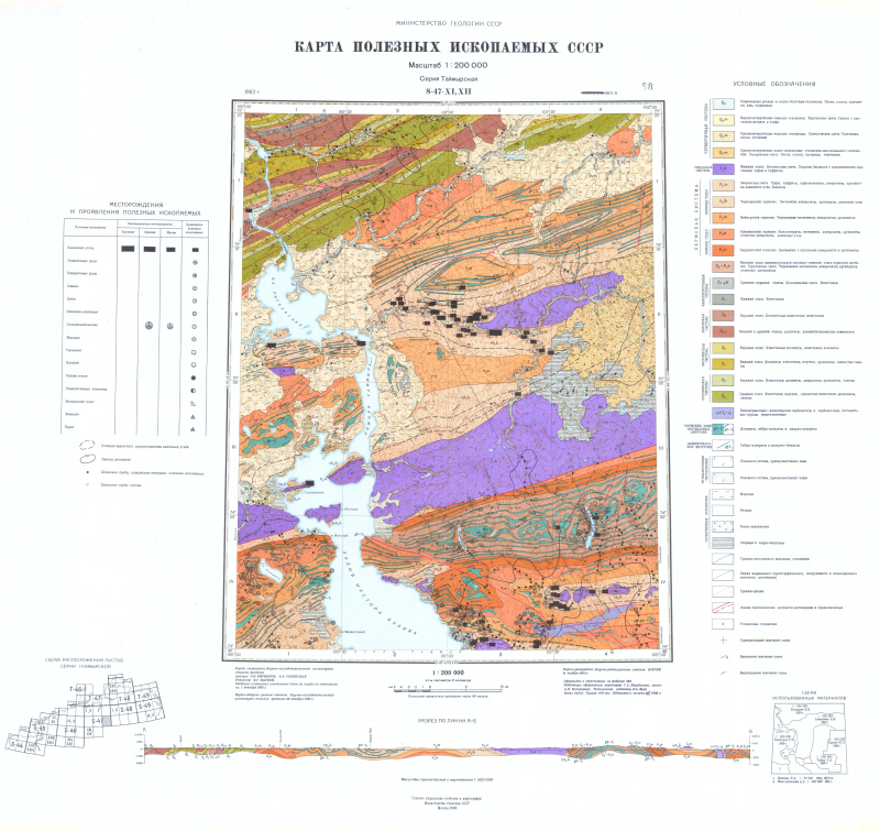 S-47-XI,XII. Геологическая карта СССР. Карта полезных ископаемых. Серия Таймырская