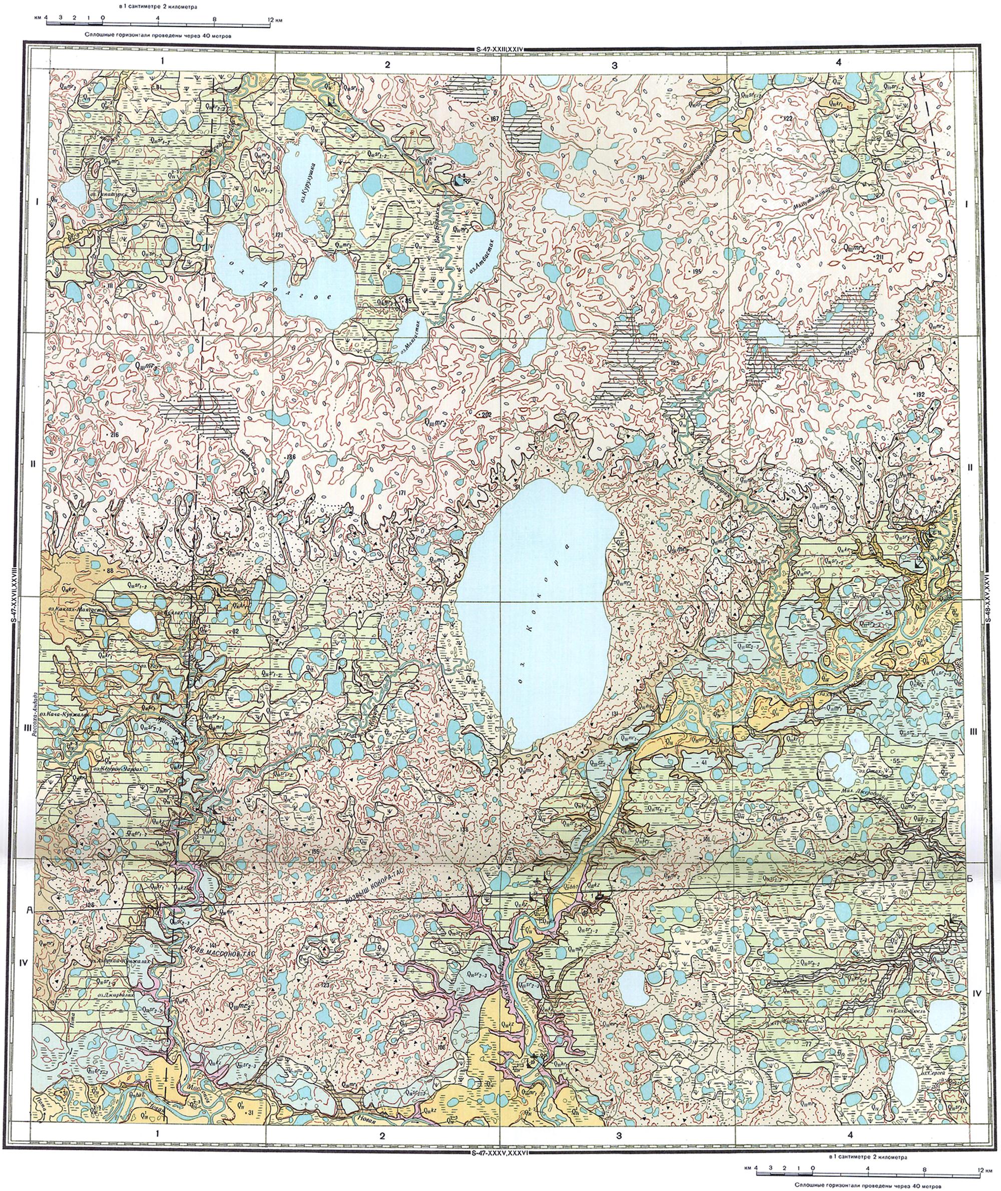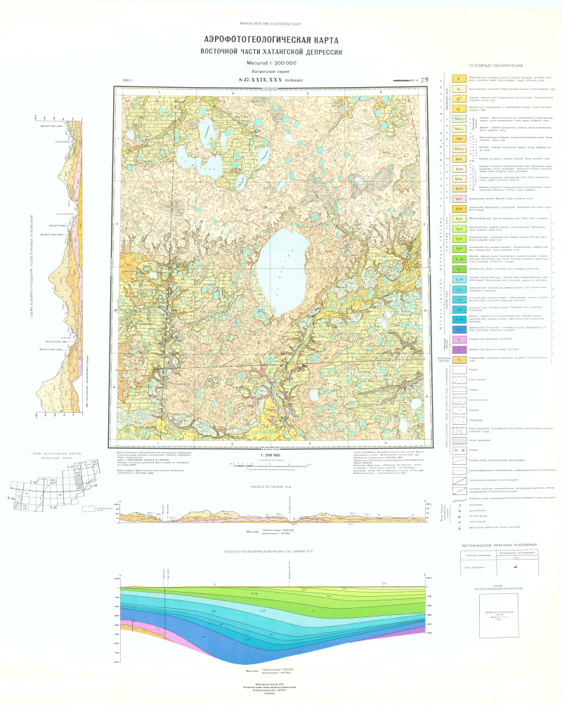 S-47-XXIX,XXX (оз.Кокора). Геологическая карта СССР. Геологическая карта и карта полезных ископаемых дочетвертичных образований. Хатангская серия