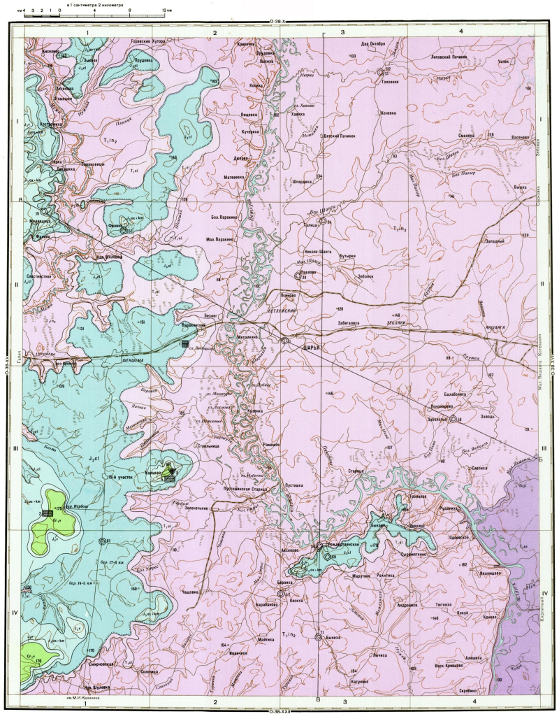 O-38-XVI. Геологическая карта СССР. Геологическая карта и карта полезных ископаемых дочетвертичных образований. Средневолжская серия