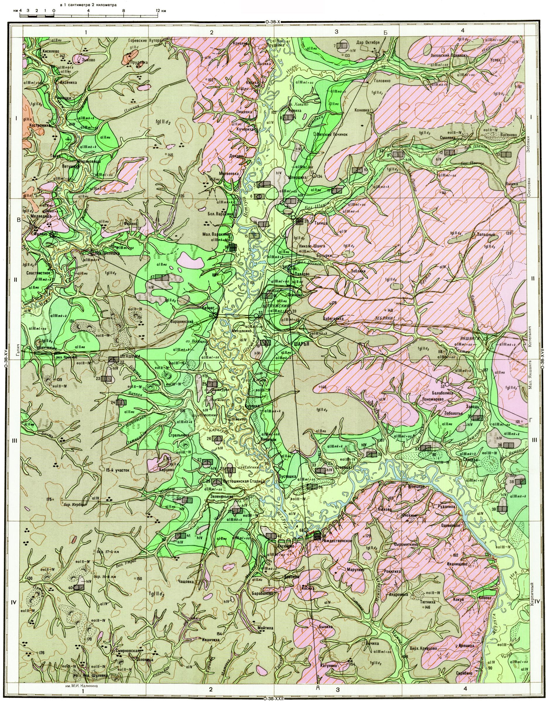 O-38-XVI. Геологическая карта СССР. Геологическая карта и карта полезных ископаемых четвертичных образований. Средневолжская серия