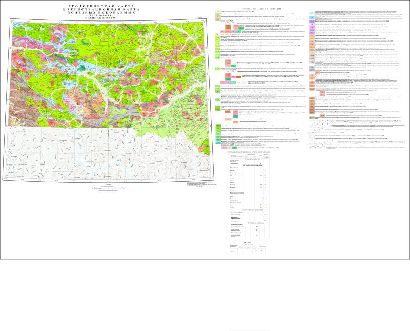 Q-58-В,Г. Геологическая карта и регистрационная карта полезных ископаемых