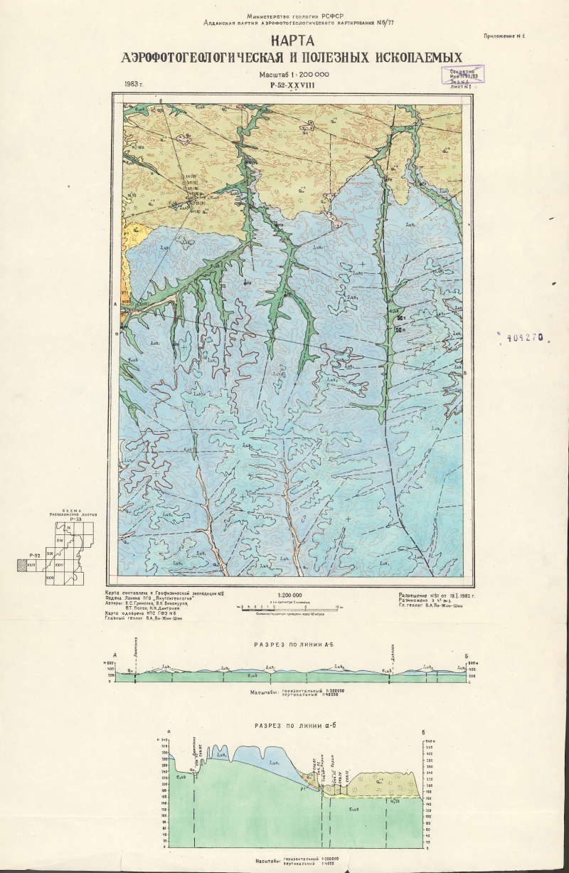P-52-XXVIII. Карта аэрофотогеологическая и полезных ископаемых