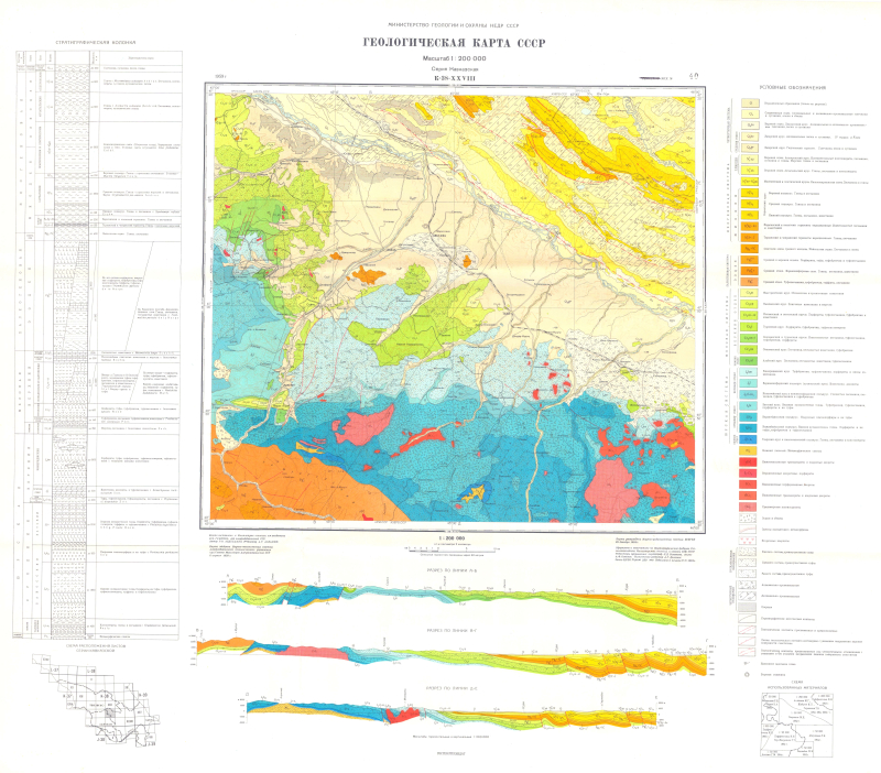 K-38-XXVIII. Геологическая карта СССР. Кавказская серия