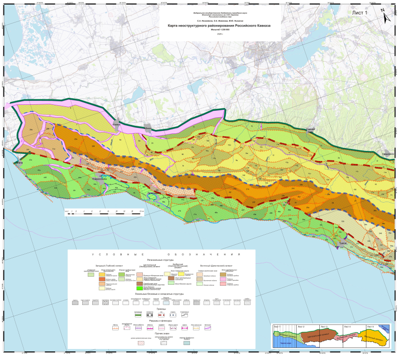 Карта неоструктурного районирования Российского Кавказа