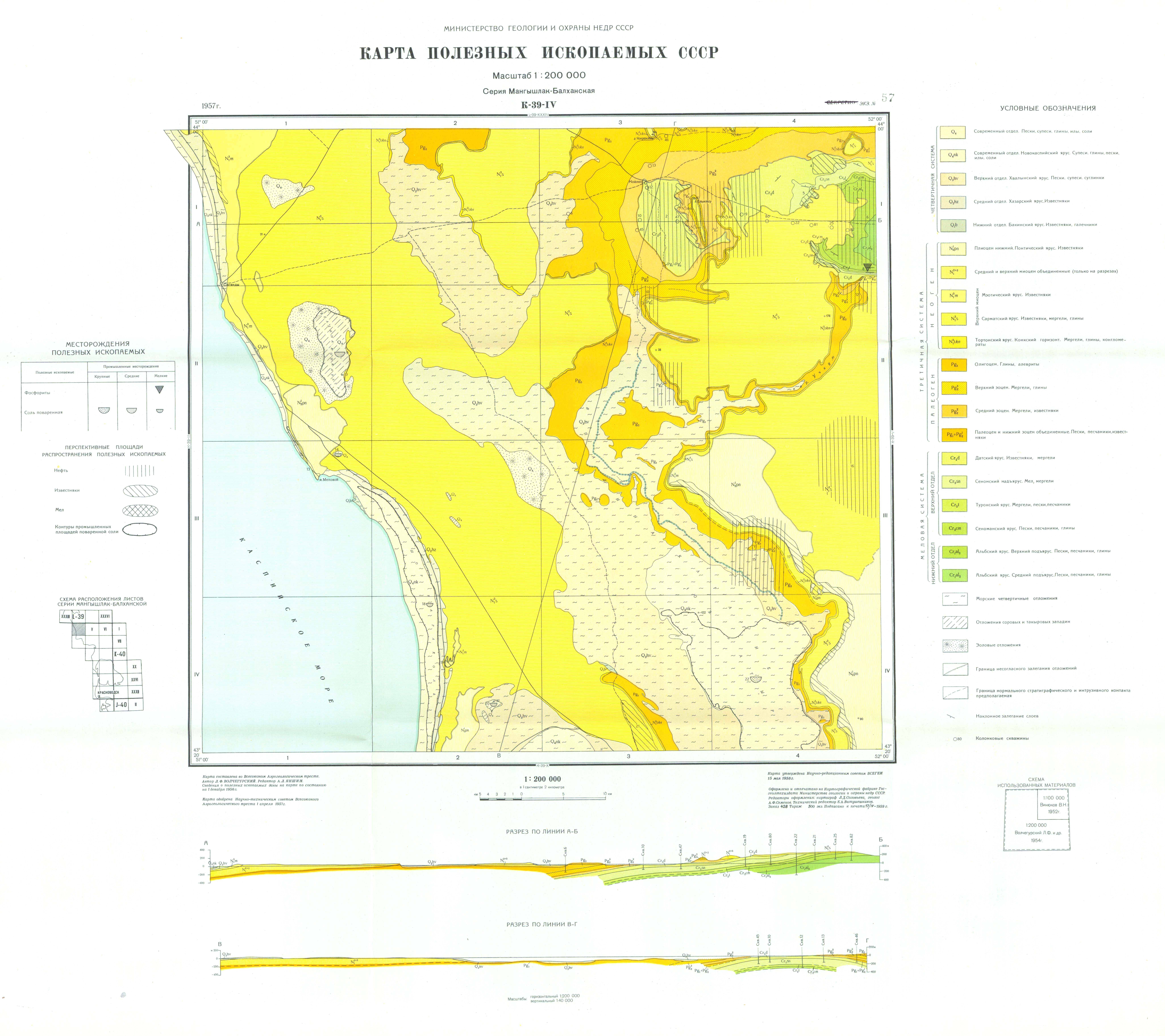 K-39-IV. Карта полезных ископаемых СССР. Мангышлак-Балханская серия