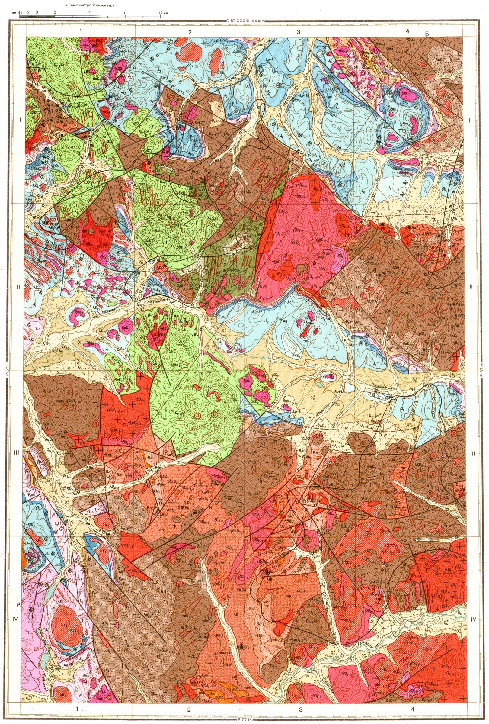P-57-III. Геологическая карта СССР. Геологическая карта и карта полезных ископаемых дочетвертичных образований. Омолонская серия
