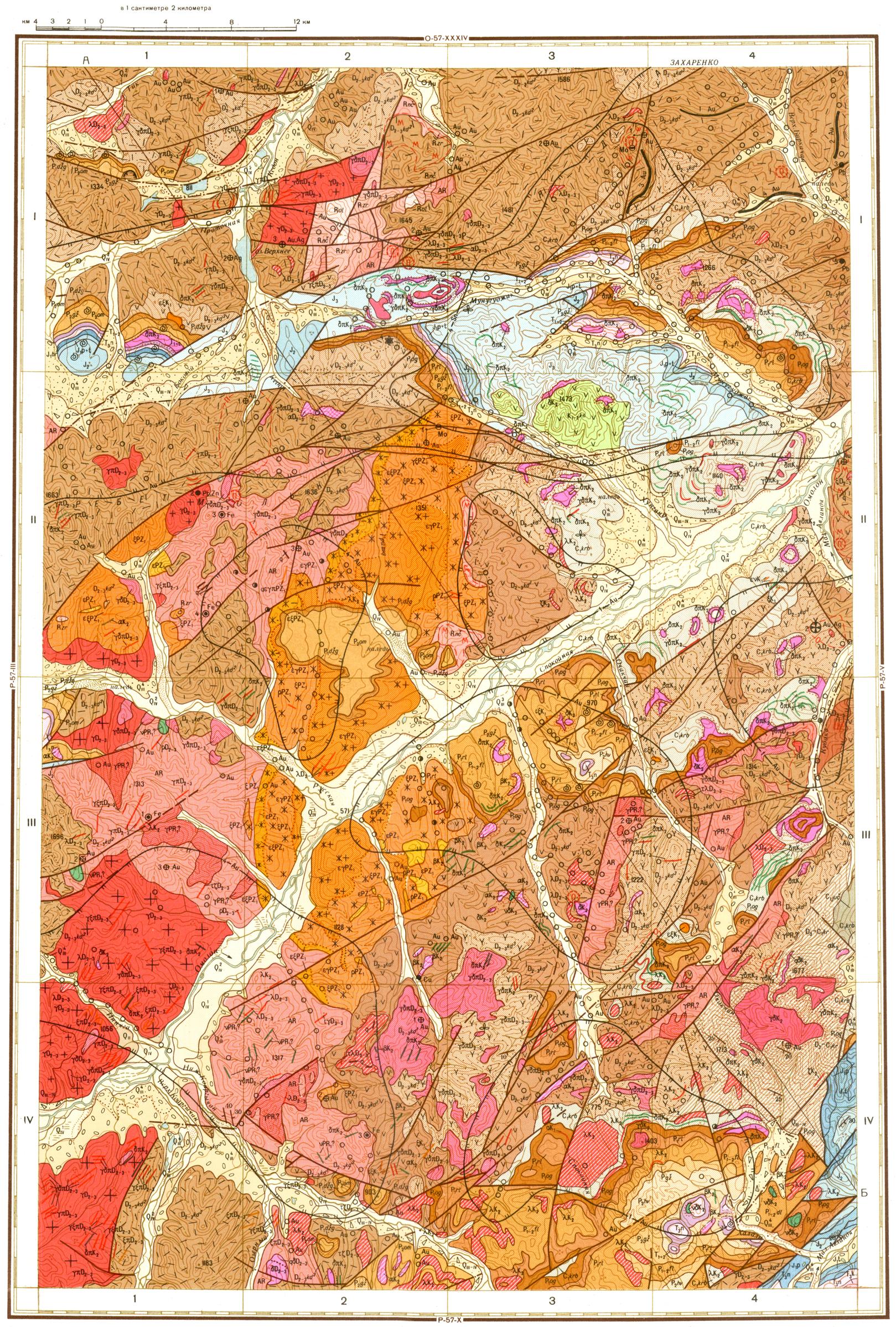 P-57-IV. Геологическая карта СССР. Геологическая карта и карта полезных ископаемых дочетвертичных образований. Омолонская серия