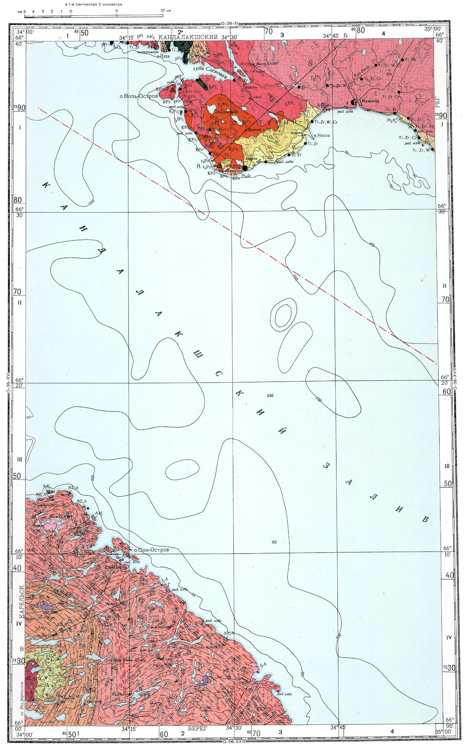 Q-36-XVII. Геологическая карта СССР. Геологическая карта и карта полезных ископаемых дочетвертичных образований. Карельская серия