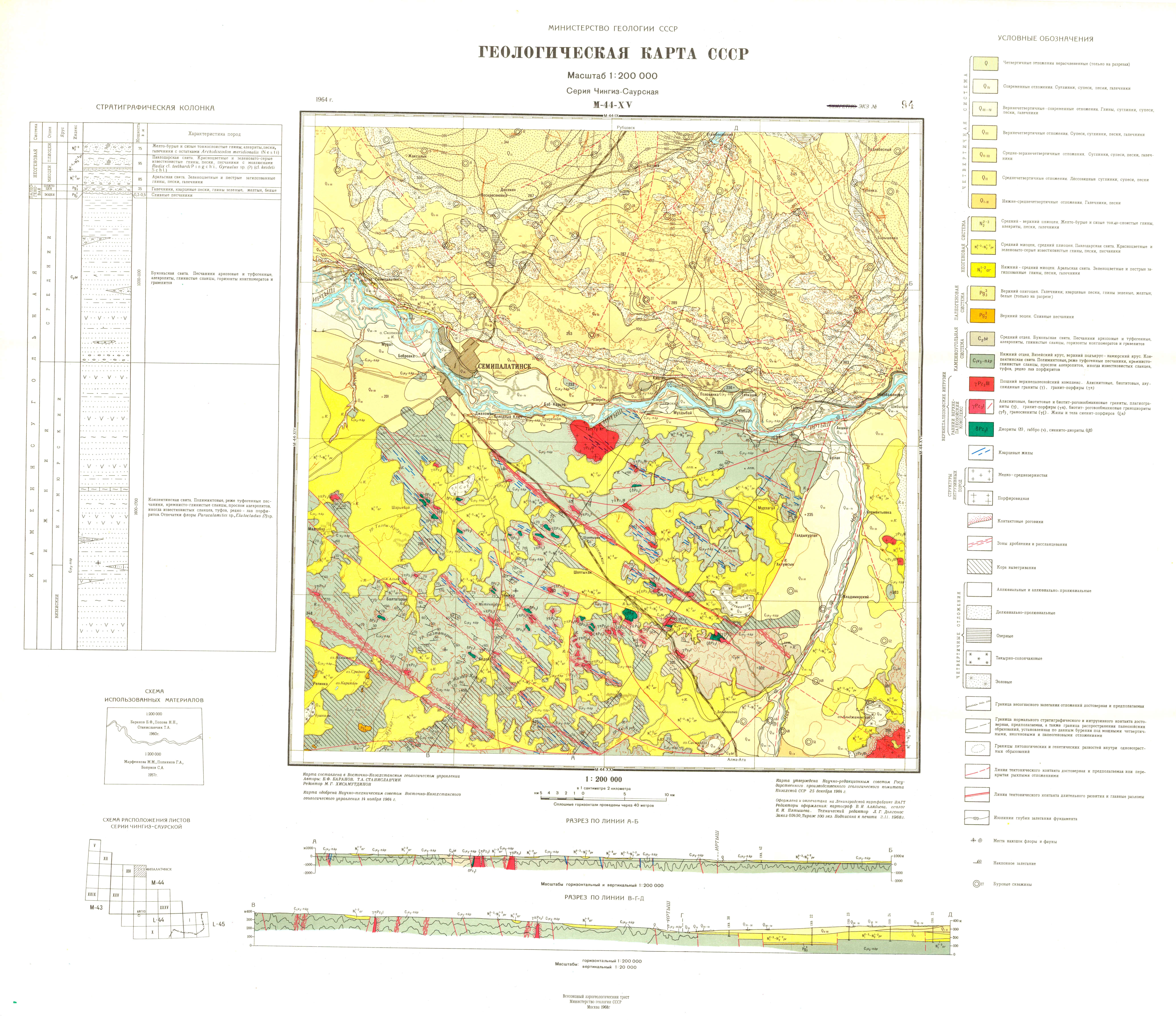 M-44-XV. Геологическая карта СССР. Чингиз-Саурская серия