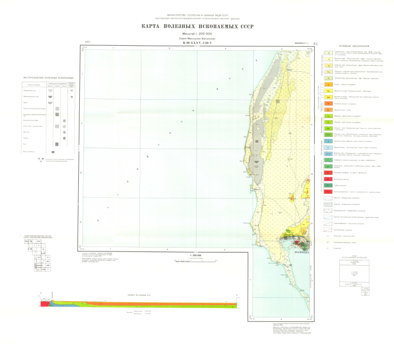 K-39-XXXV; J-39-V. Карта полезных ископаемых СССР. Мангышлак-Балханская серия