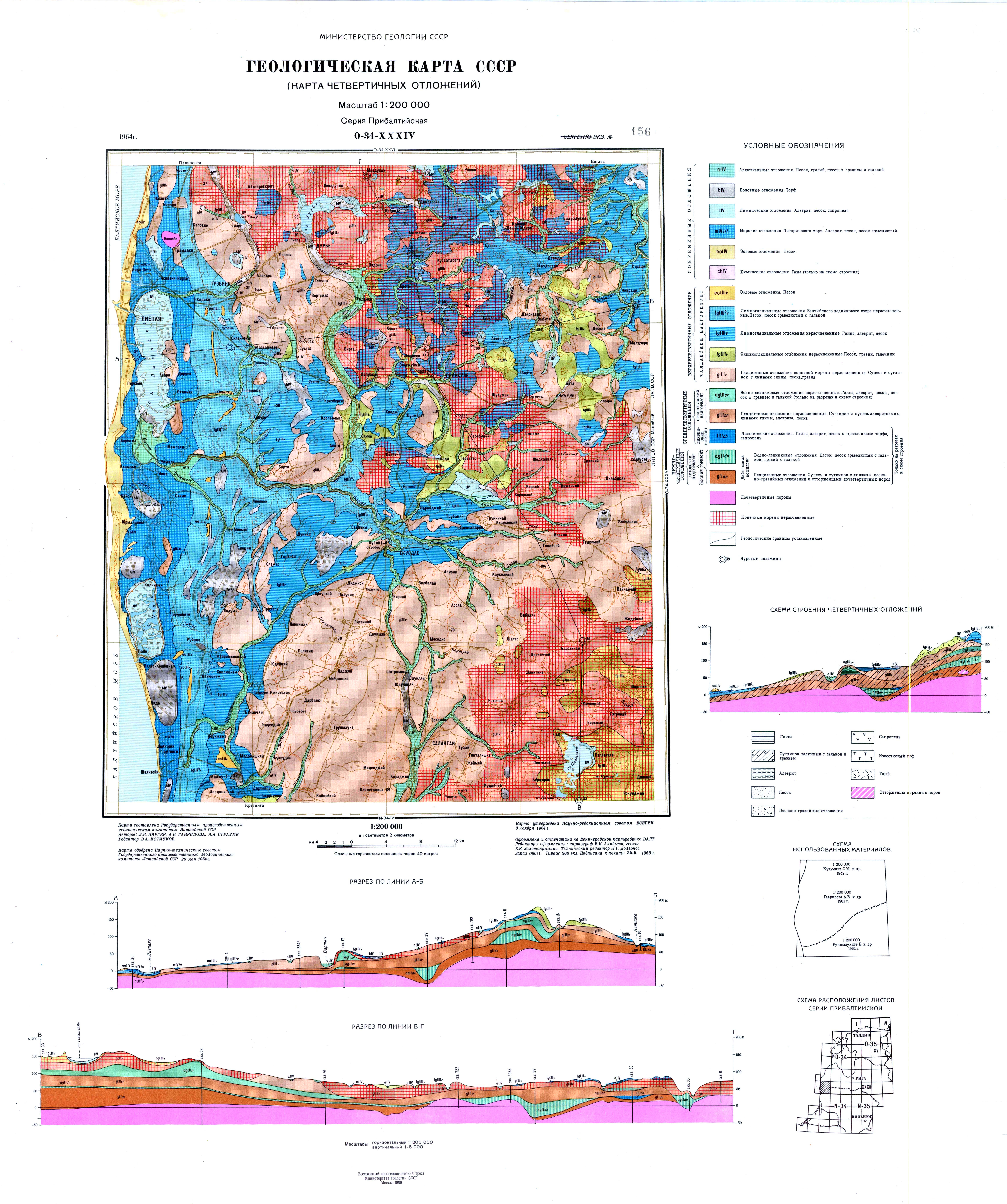 O-34-XXXIV. Геологическая карта СССР. Карта четвертичных отложений. Прибалтийская серия