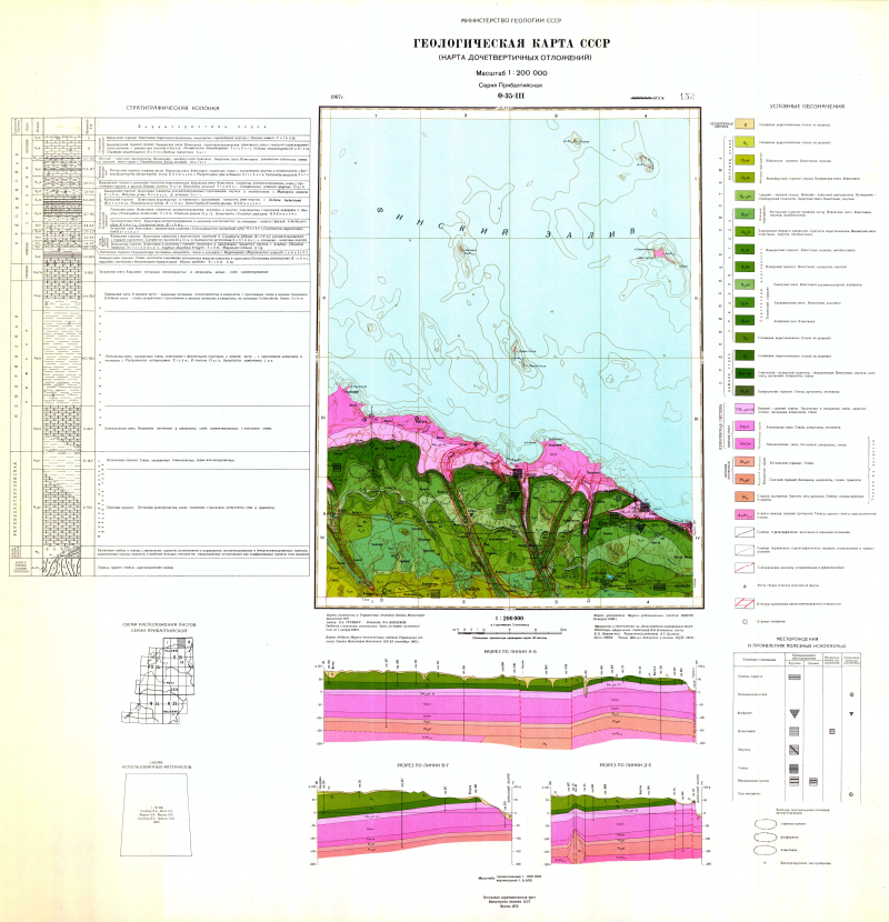 O-35-III. Геологическая карта СССР. Карта дочетвертичных отложений. Прибалтийская серия