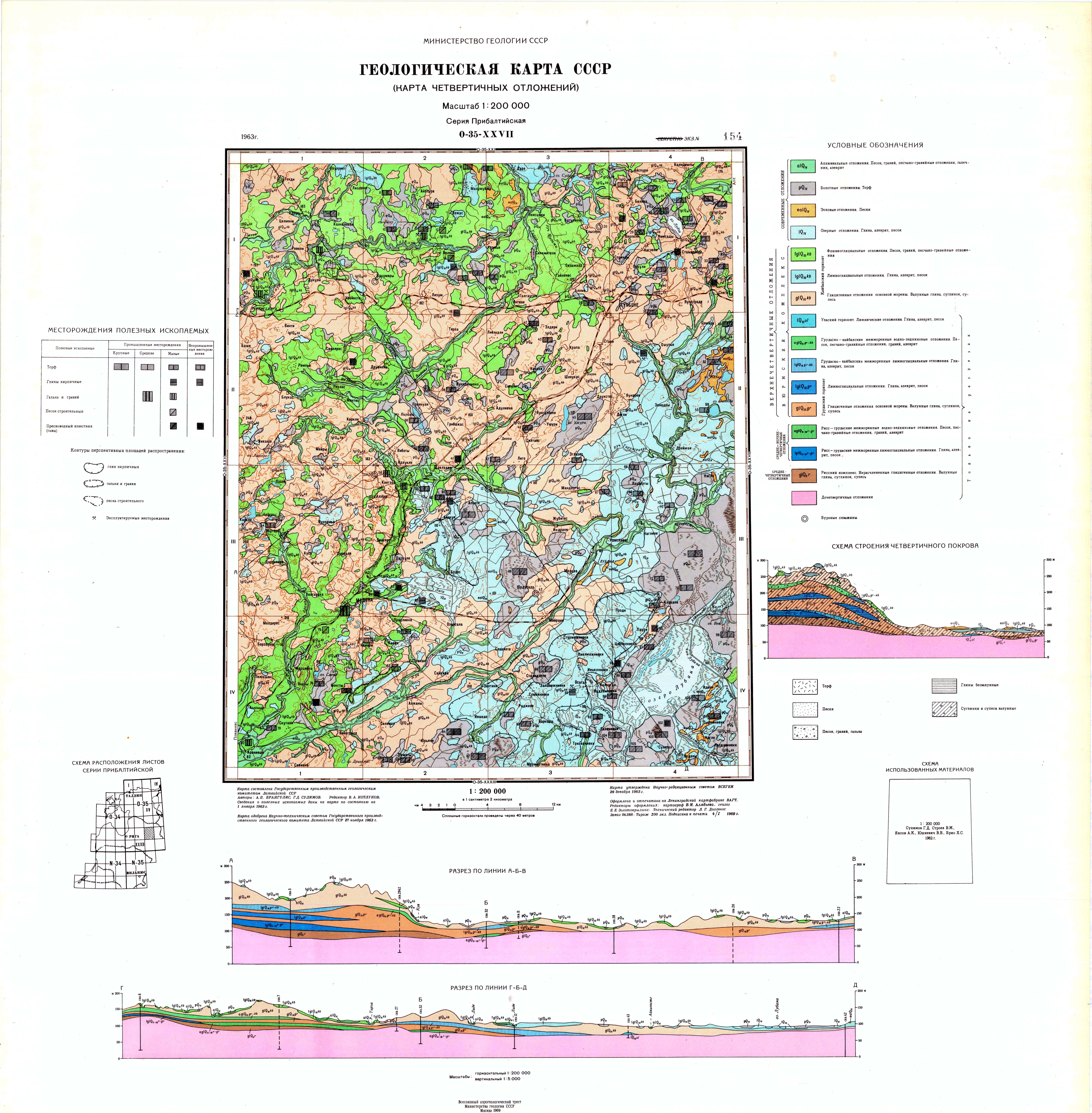 O-35-XXVII. Геологическая карта СССР. Карта четвертичных отложений. Прибалтийская серия