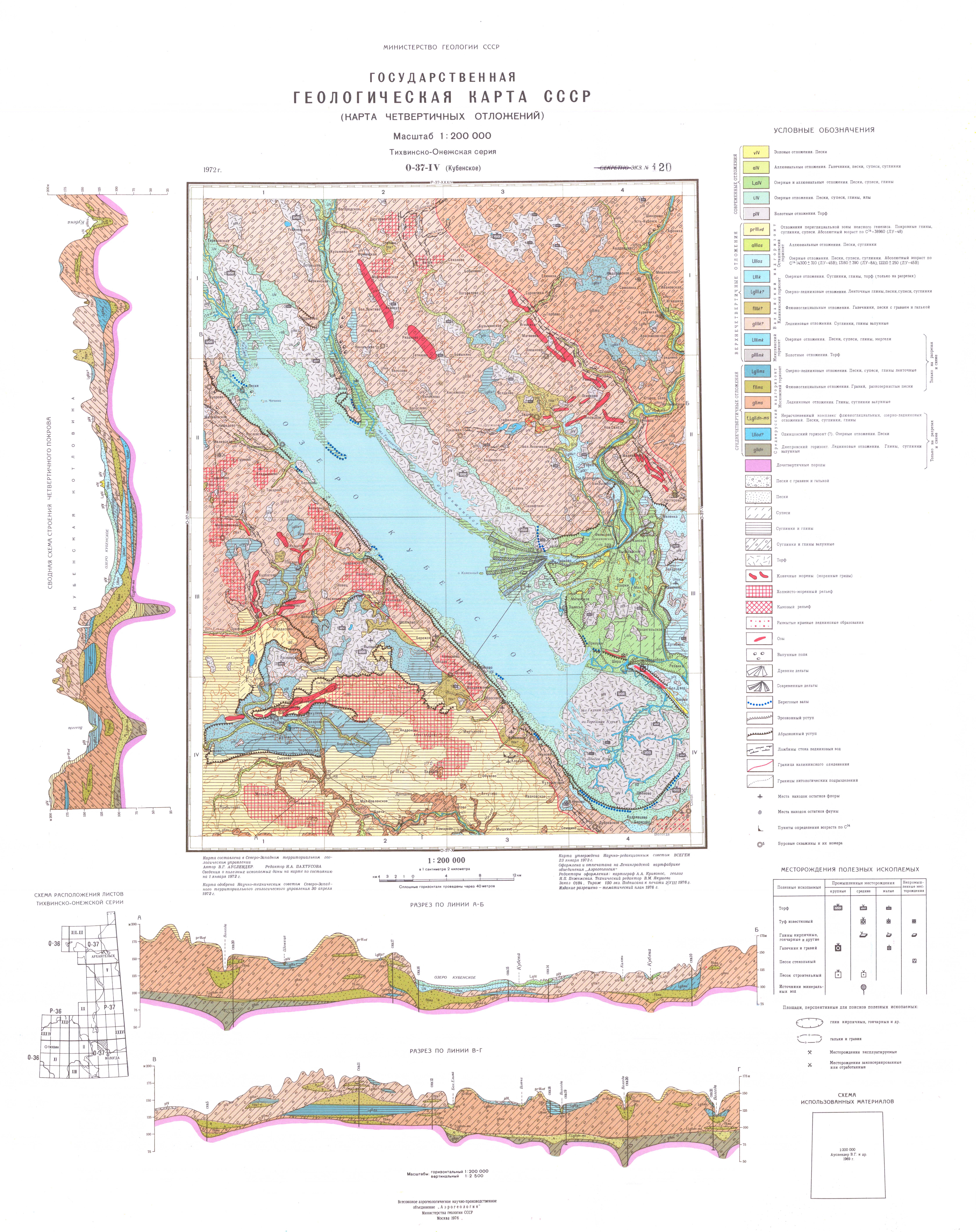 O-37-IV (Кубенское). Государственная геологическая карта СССР. Карта четвертичных отложений. ТихвинскоОнежская серия