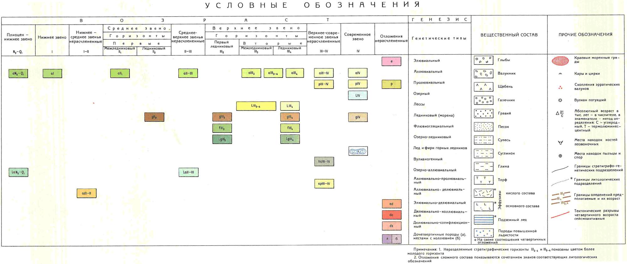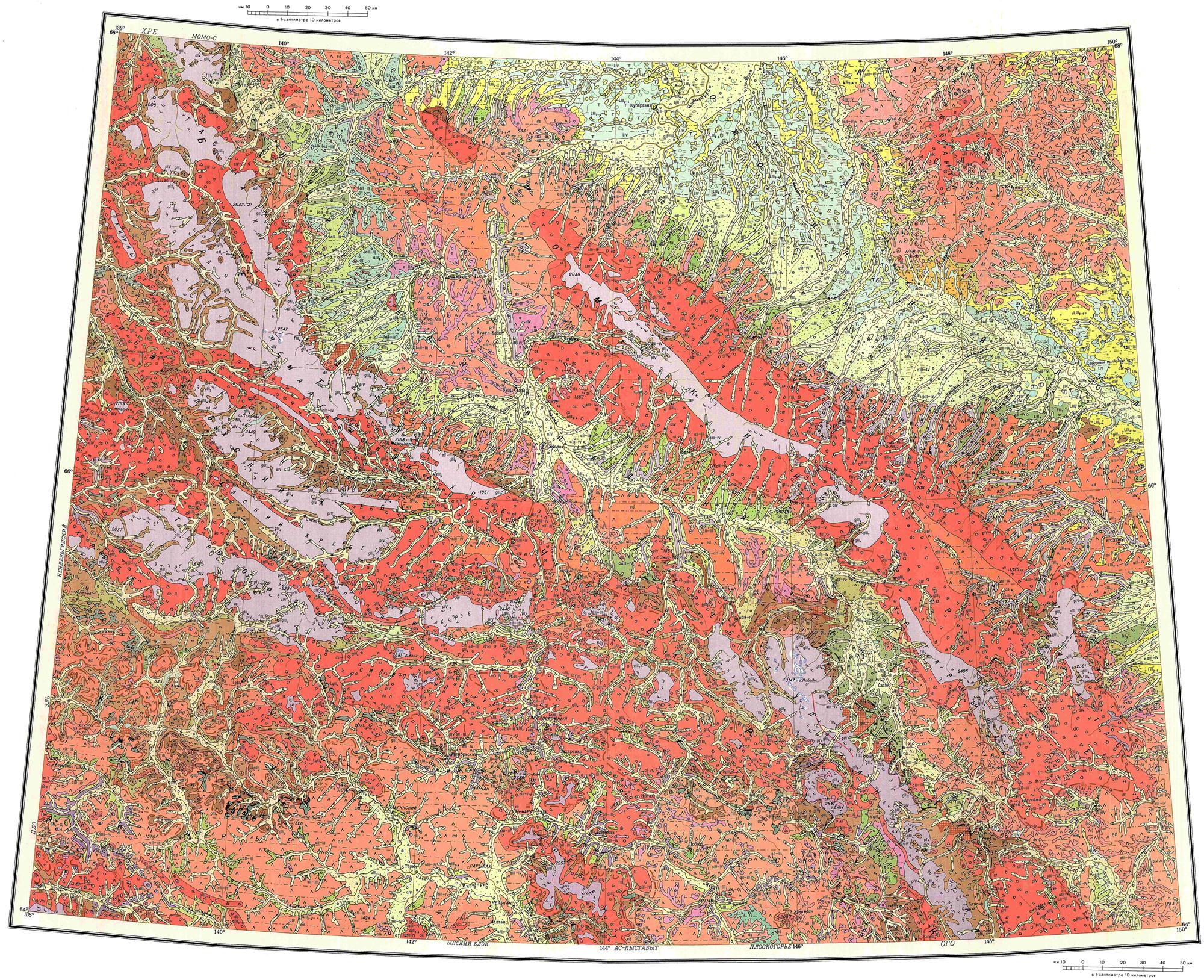 Q-54,55. Государственная геологическая карта СССР (Хонуу). Карта четвертичных образований