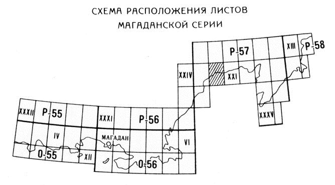 P-57-XX. Геологическая карта СССР. Геологическая карта и карта полезных ископаемых дочетвертичных образований. Магаданская серия