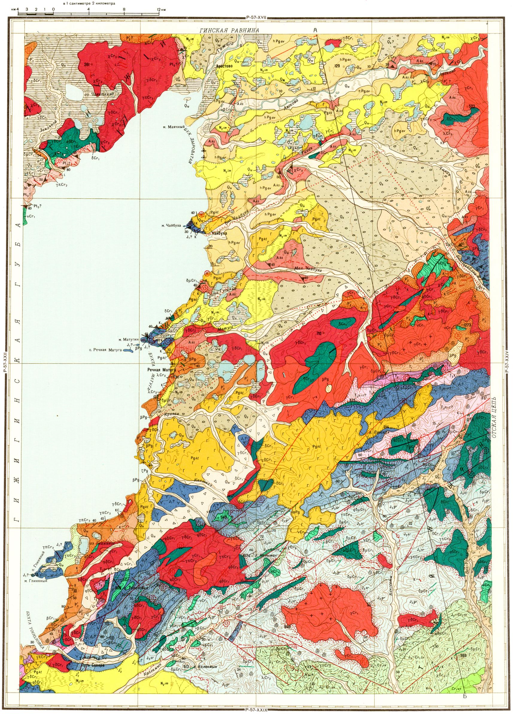 P-57-XXIII. Геологическая карта СССР. Геологическая карта и карта полезных ископаемых дочетвертичных образований. Магаданская серия