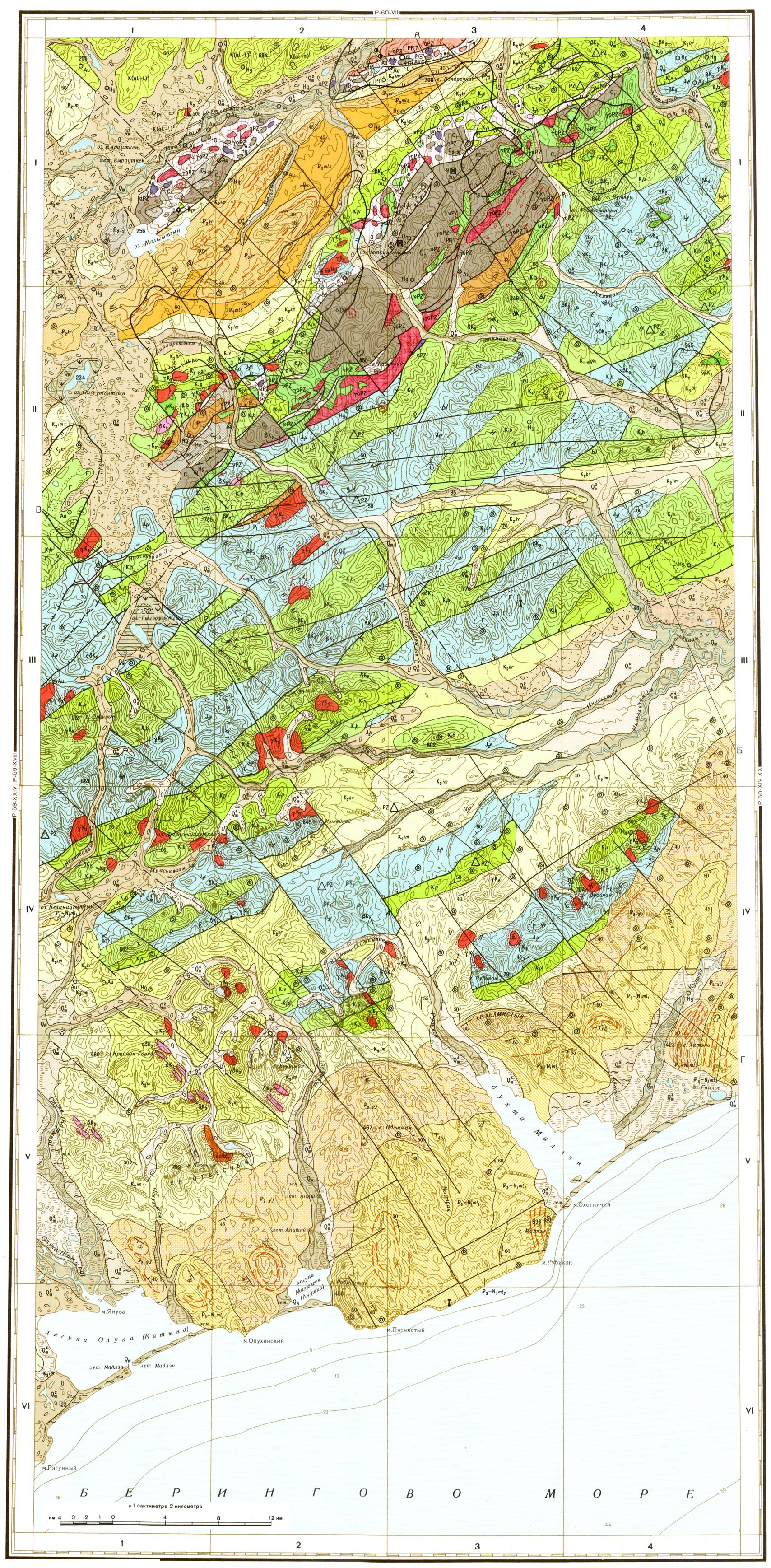 P-60-XIII,XIX. Геологическая карта СССР. Геологическая карта и карта полезных ископаемых дочетвертичных образований. Корякская серия