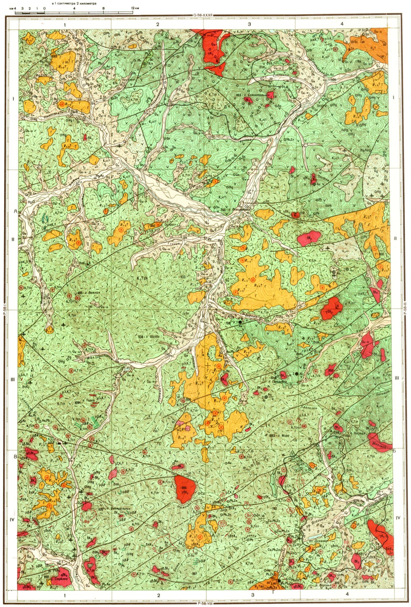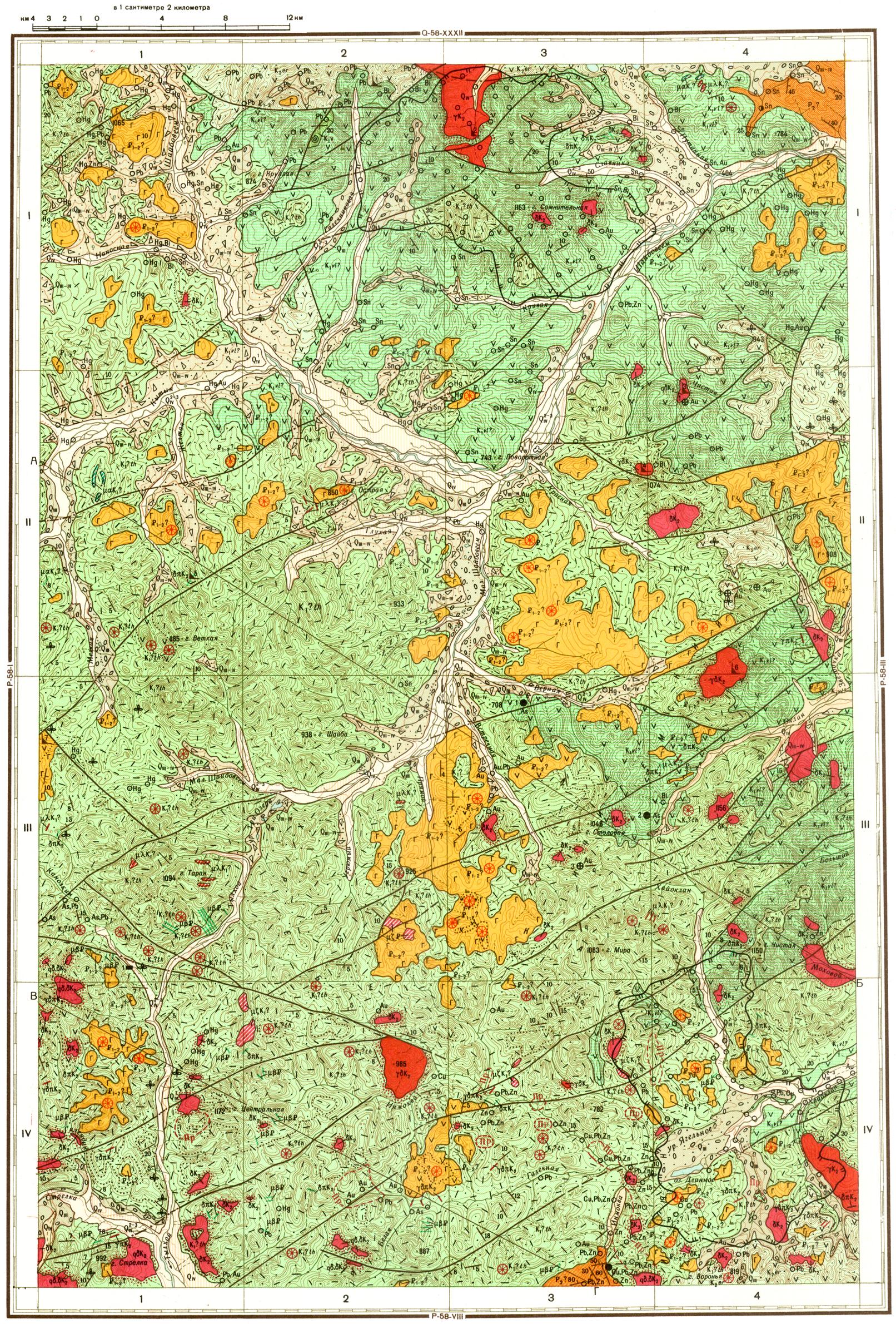 P-58-II. Геологическая карта СССР. Геологическая карта и карта полезных ископаемых дочетвертичных образований. Еропольская серия