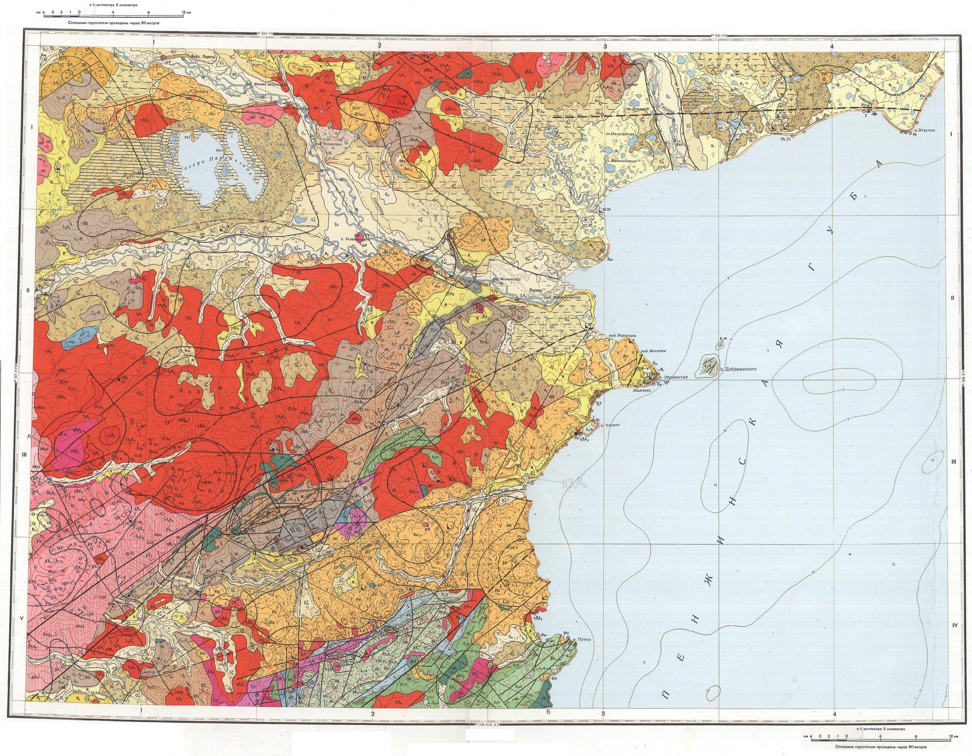P-58-XIII,XIV. Геологическая карта СССР. Геологическая карта и карта полезных ископаемых дочетвертичных образований. Магаданская серия