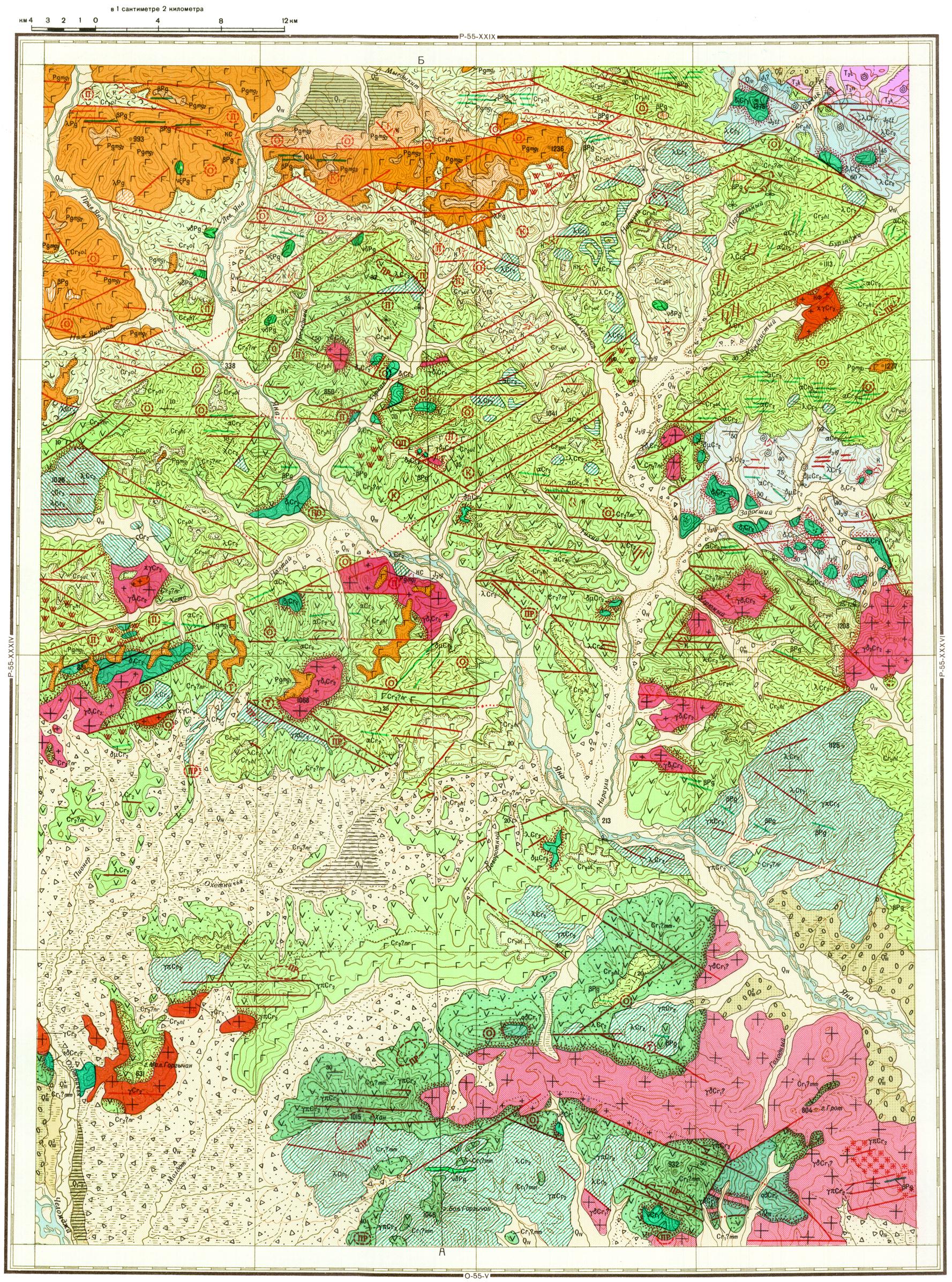 P-55-XXXV. Геологическая карта СССР. Геологическая карта и карта полезных ископаемых дочетвертичных образований. Магаданская серия