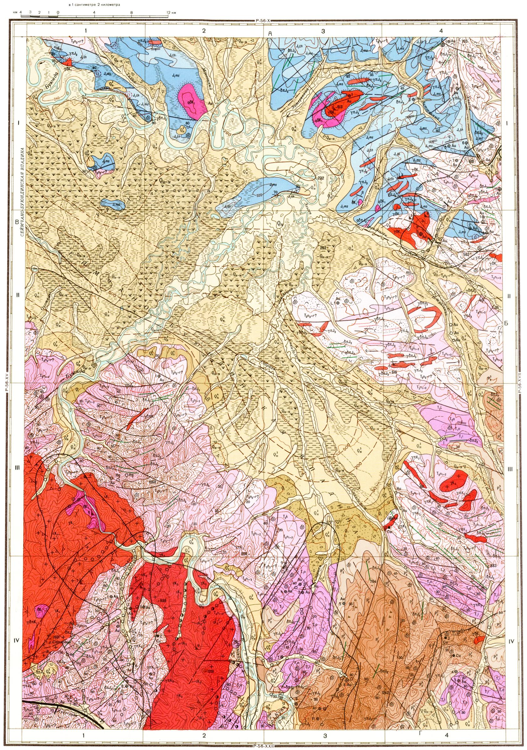 P-56-XVI. Геологическая карта СССР. Геологическая карта и карта полезных ископаемых дочетвертичных образований. Верхнеколымская серия