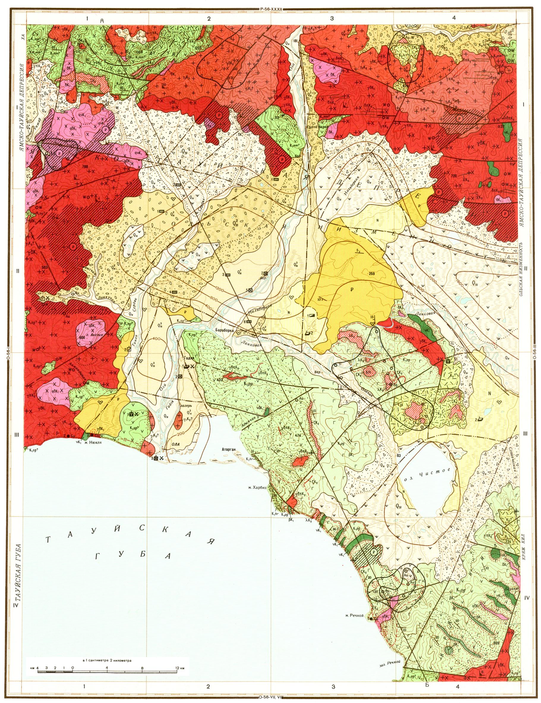 O-56-II. Геологическая карта СССР. Геологическая карта и карта полезных ископаемых дочетвертичных образований. Магаданская серия
