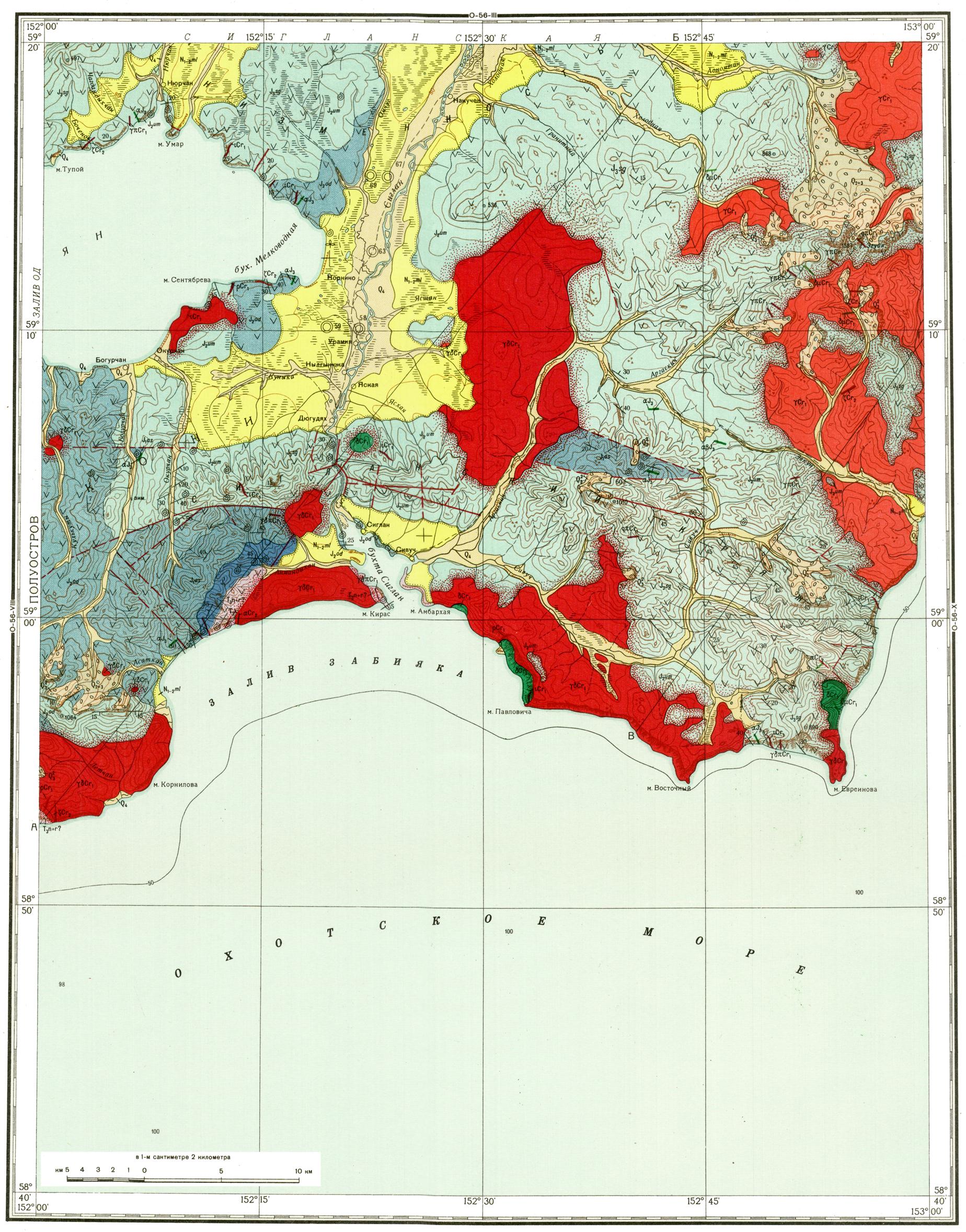 O-56-IX. Геологическая карта СССР. Геологическая карта и карта полезных ископаемых дочетвертичных образований. Магаданская серия