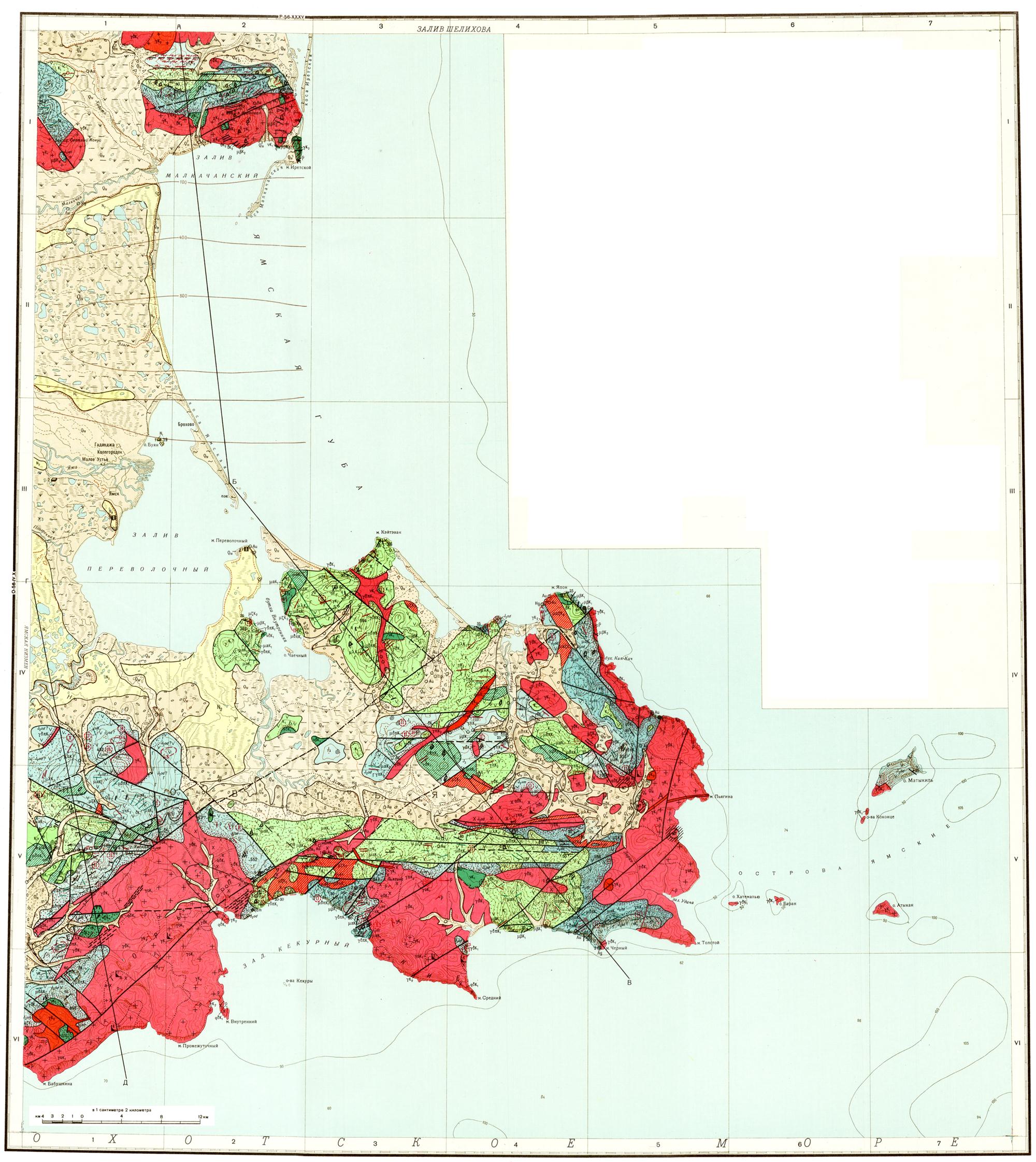 O-56-V,VI,XI,XII. Геологическая карта СССР. Геологическая карта и карта полезных ископаемых дочетвертичных образований. Магаданская серия