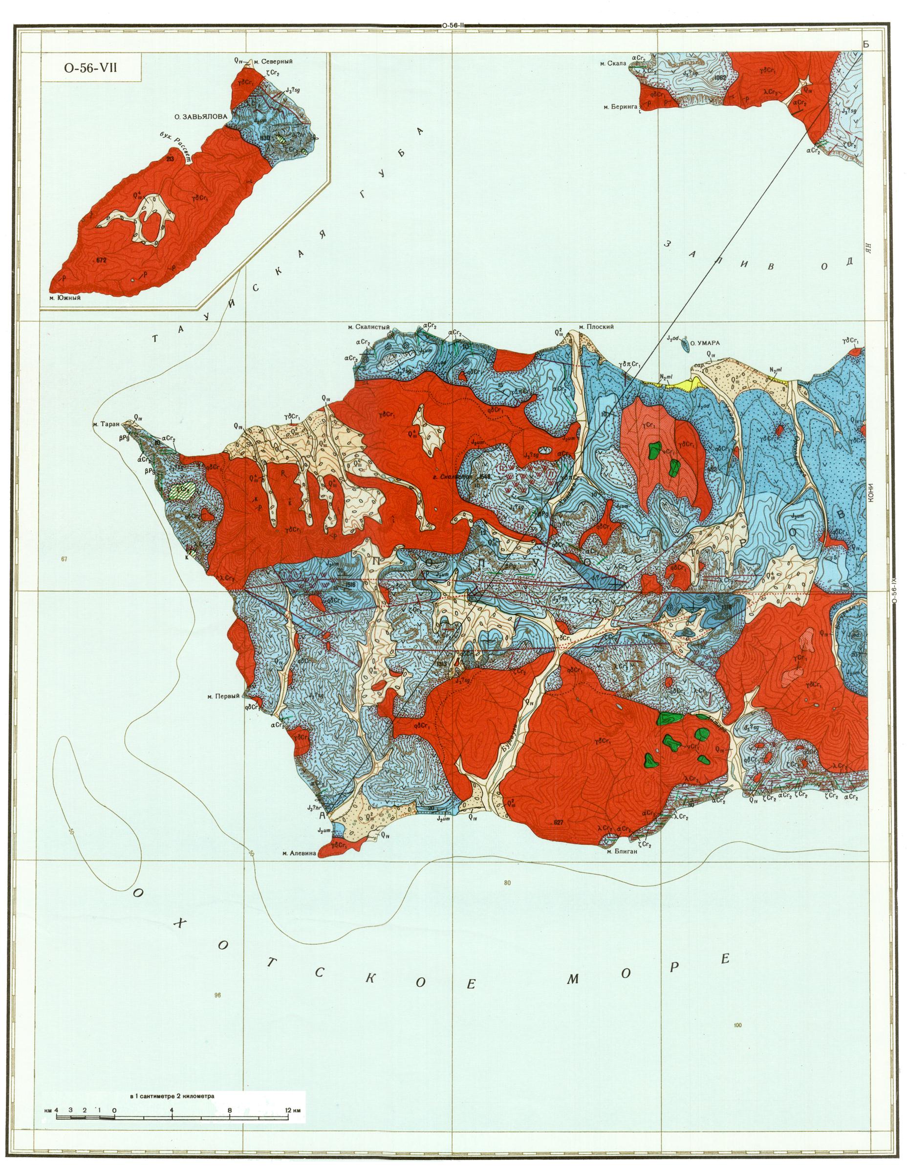 O-56-VII,VIII. Геологическая карта СССР. Геологическая карта и карта полезных ископаемых дочетвертичных образований. Магаданская серия