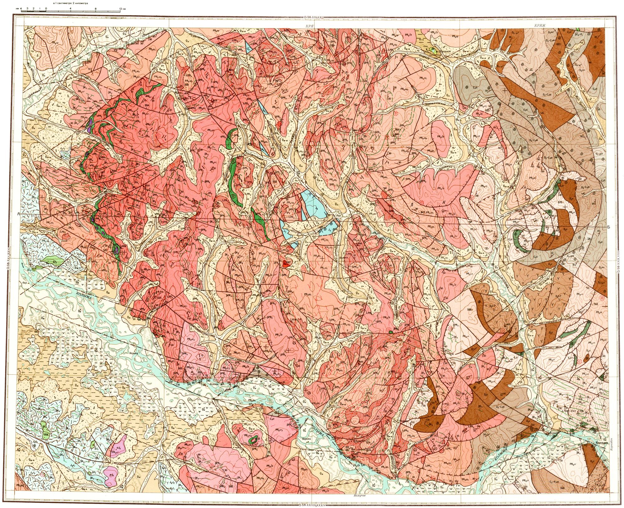 Q-56-XXVII,XXVIII. Геологическая карта СССР. Среднеколымская серия