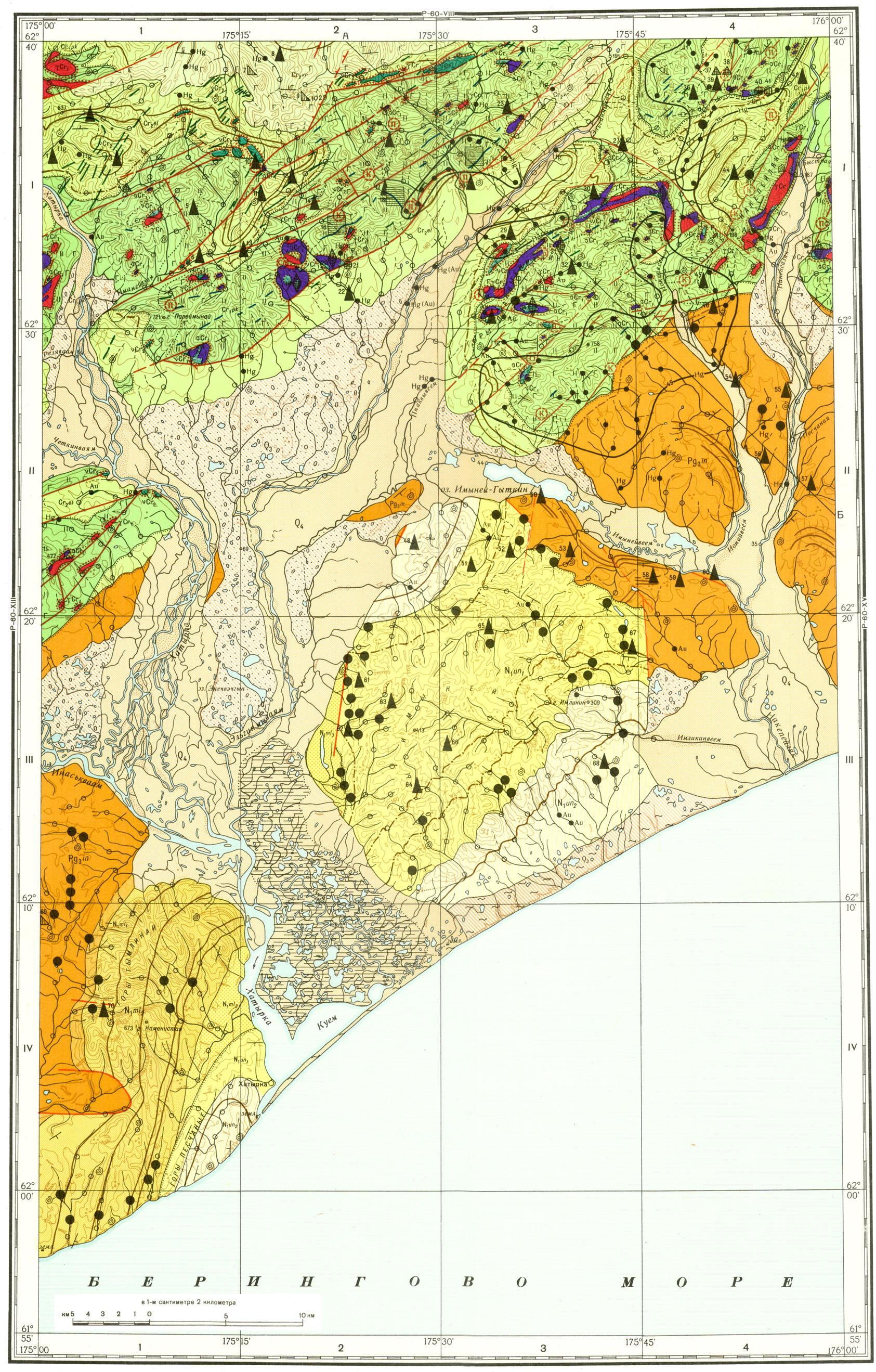 P-60-XIV,XX. Геологическая карта СССР. Корякская серия
