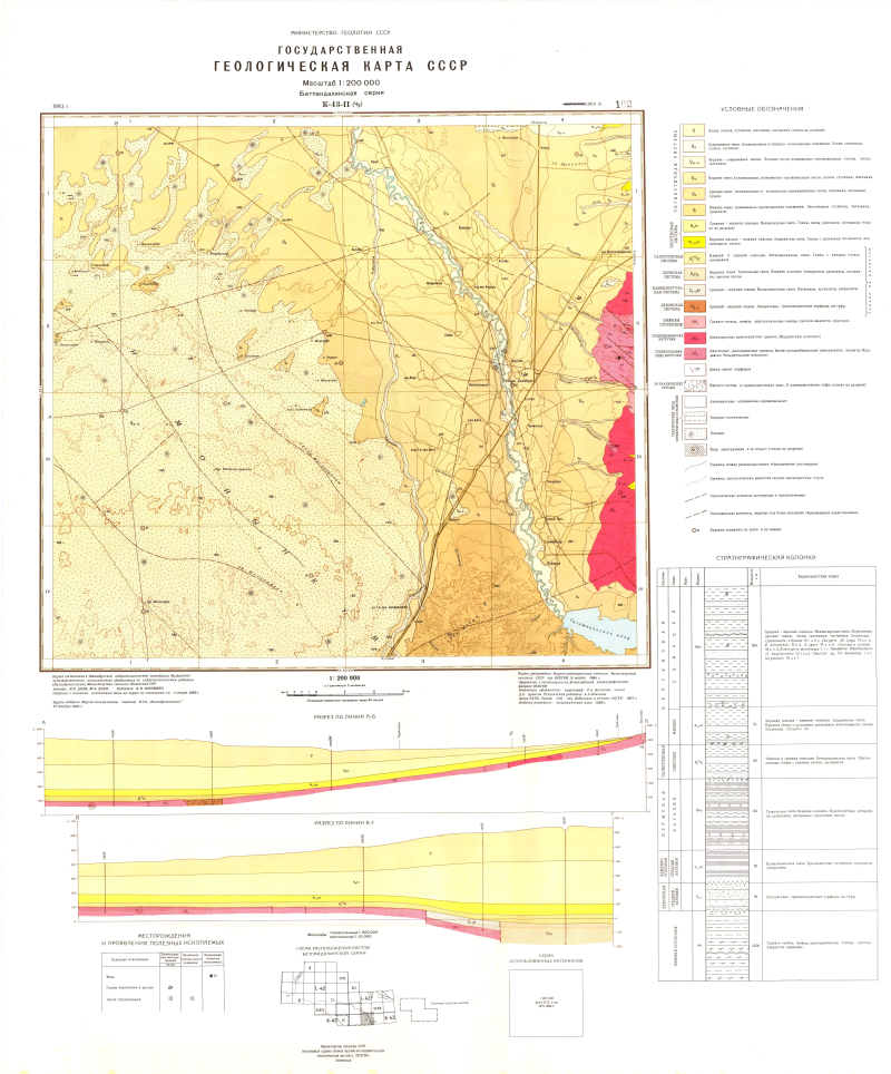 K-43-II (Чу). Государственная геологическая карта СССР. Бетпакдалинская серия