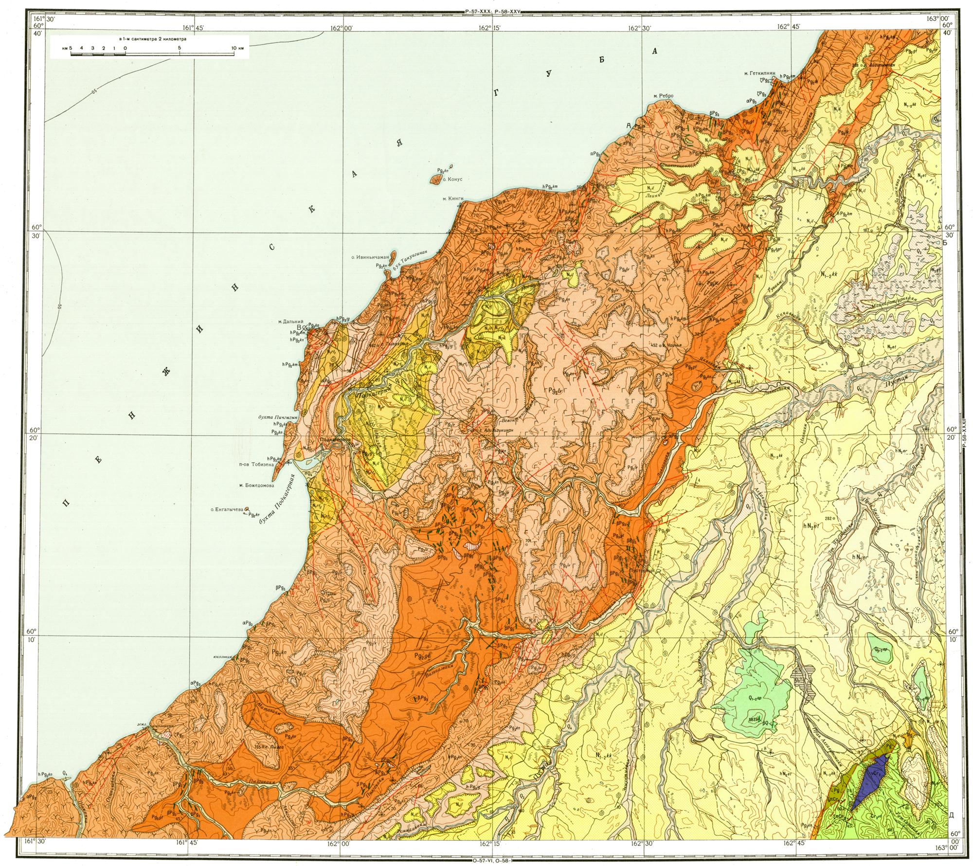 P-57-XXXVI; P-58-XXXI. Геологическая карта СССР. Корякская серия